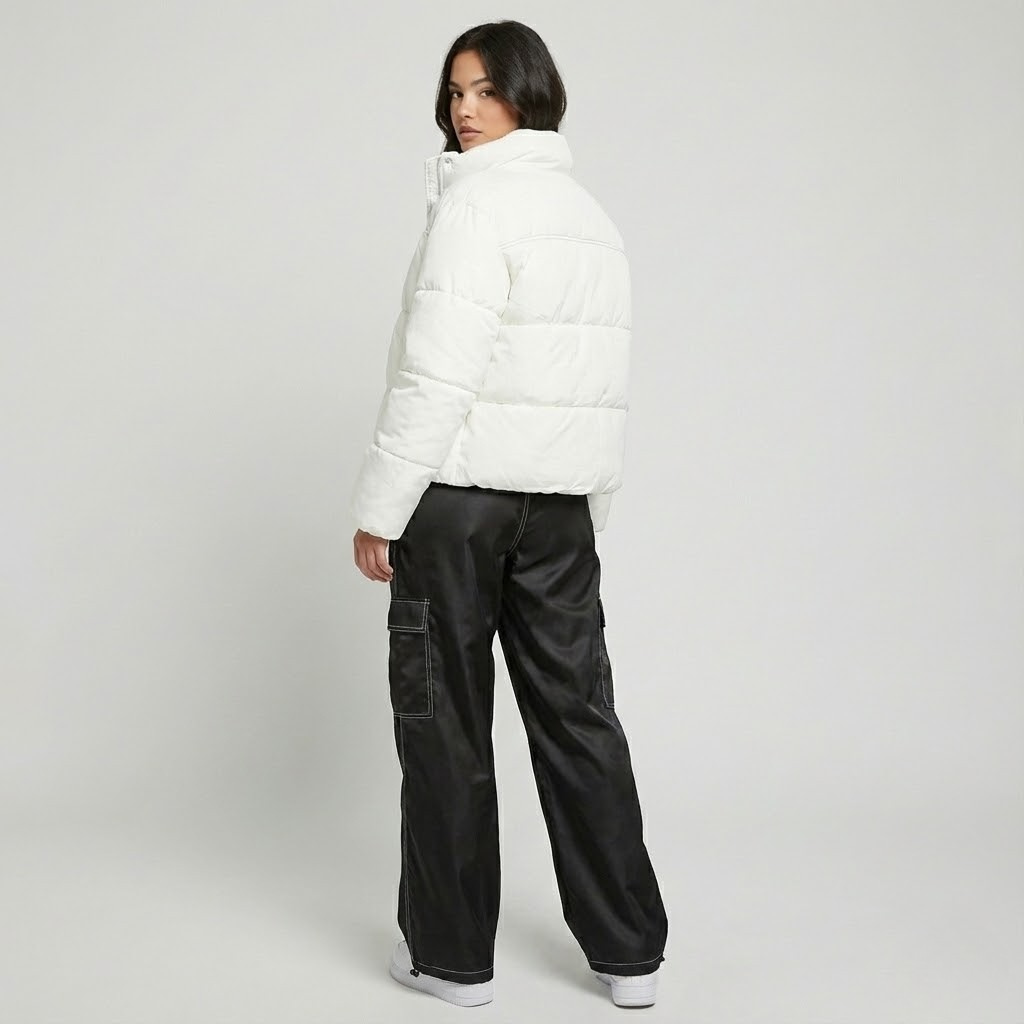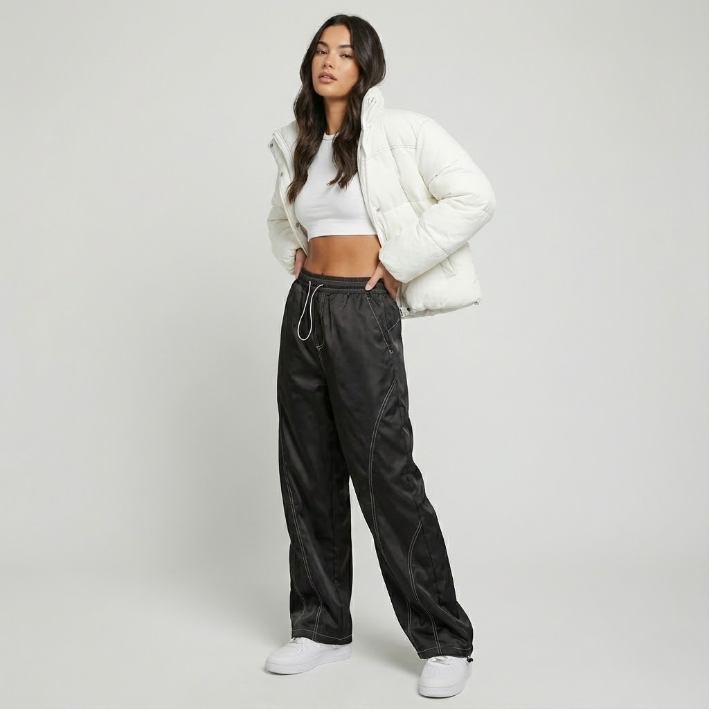 Dica de estilo: combine com um top ajustado ou uma camisola curta para equilibrar volumes e criar um visual moderno.