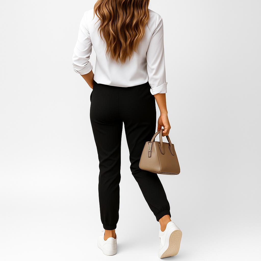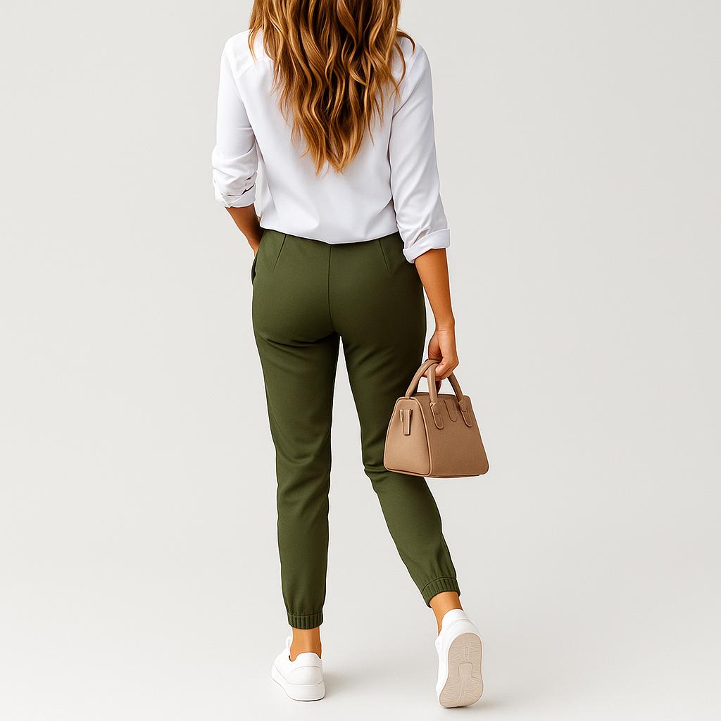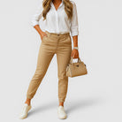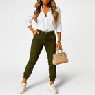 Calças chino femininas com corte slim fit e cintura média