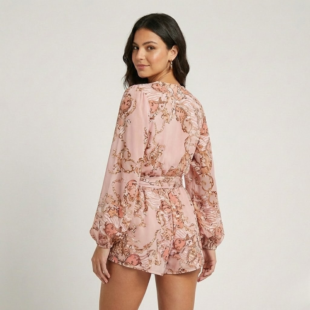 Macacão elegante de mulher com cinto ajustável e corte fluido