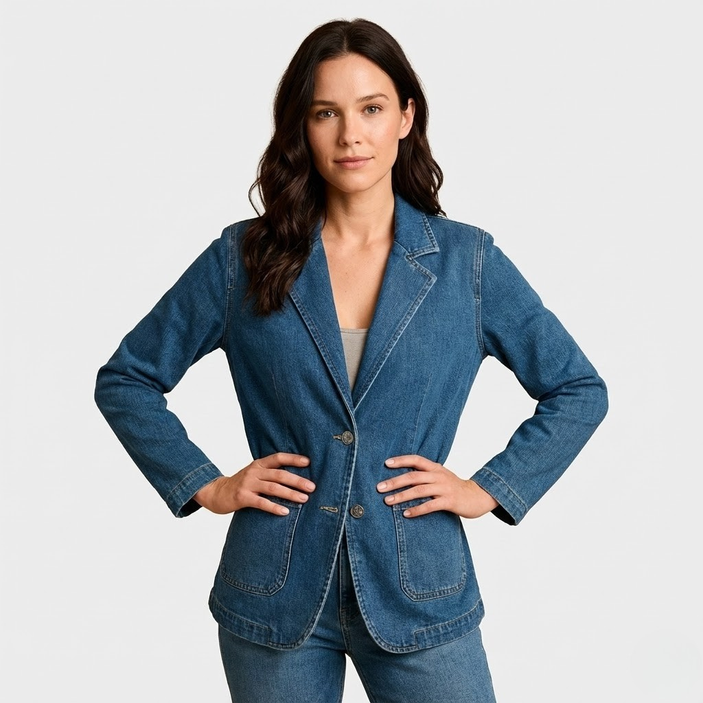 Blazer casual em denim de algodão | Corte direito | Elegância descontraída