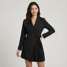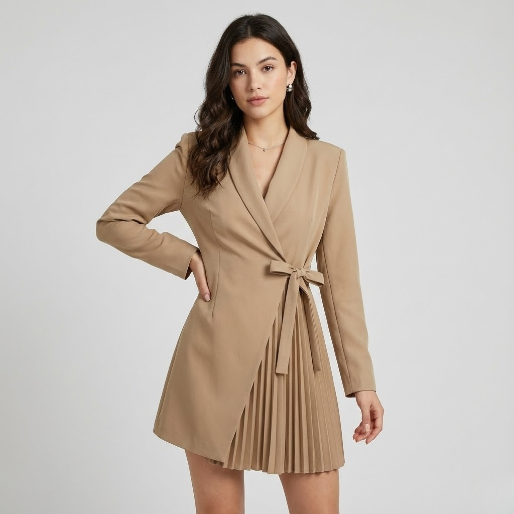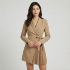 Blazer vestido estruturado em mistura elegante | Corte cintado | Detalhe plissado feminino
