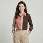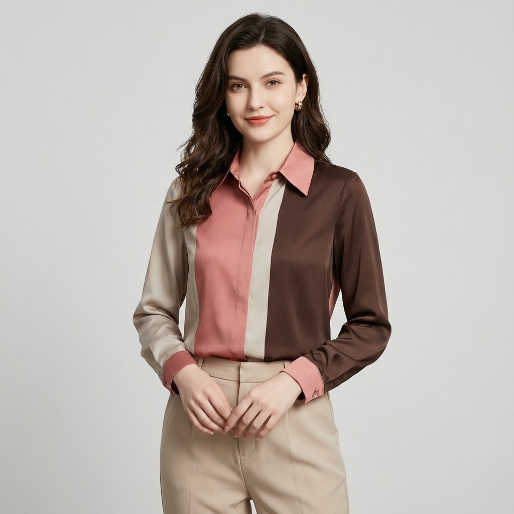 Blusa acetinada com patchwork elegante | Corte fluido | Estilo urbano sofisticado
