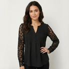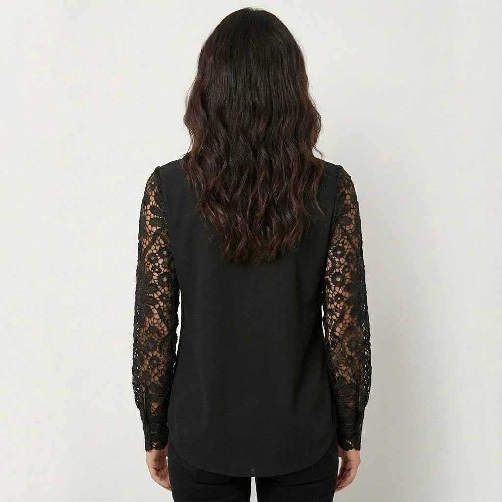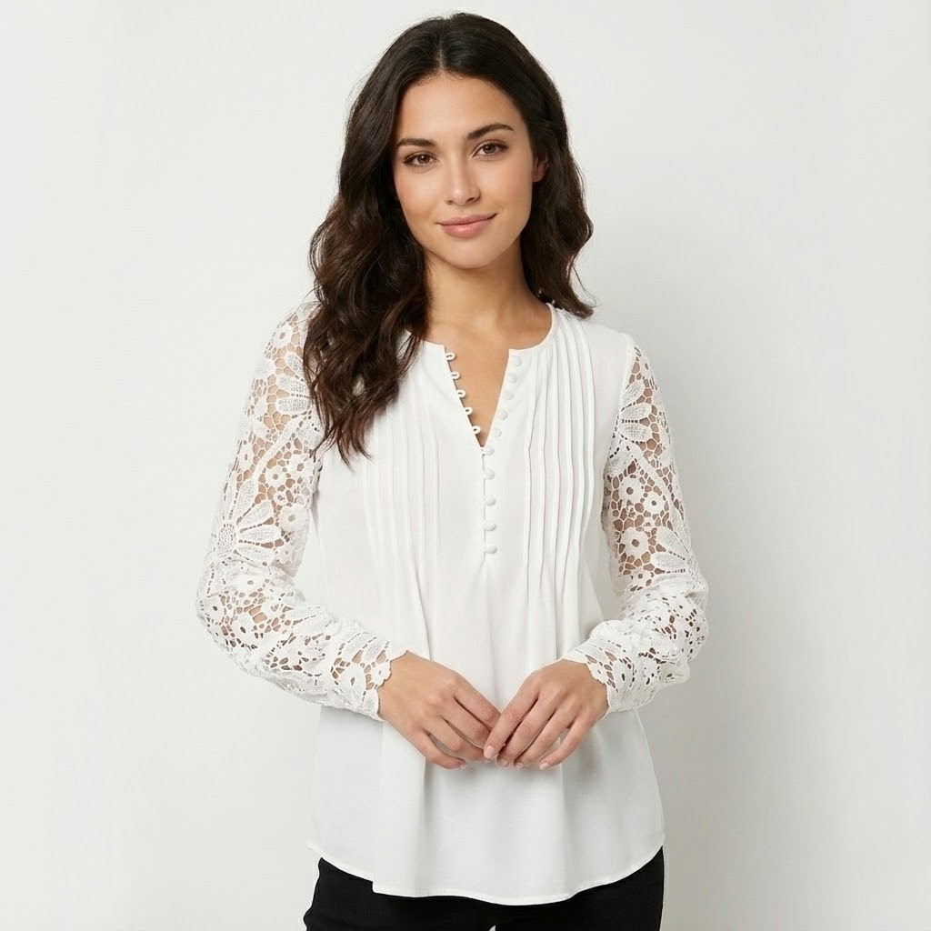 Blusa elegante com mangas em renda | Corte fluido | Feminilidade delicada