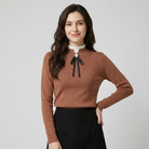 Blusa elegante em tecido fluido | Corte clássico | Laço decorativo e acabamentos delicados