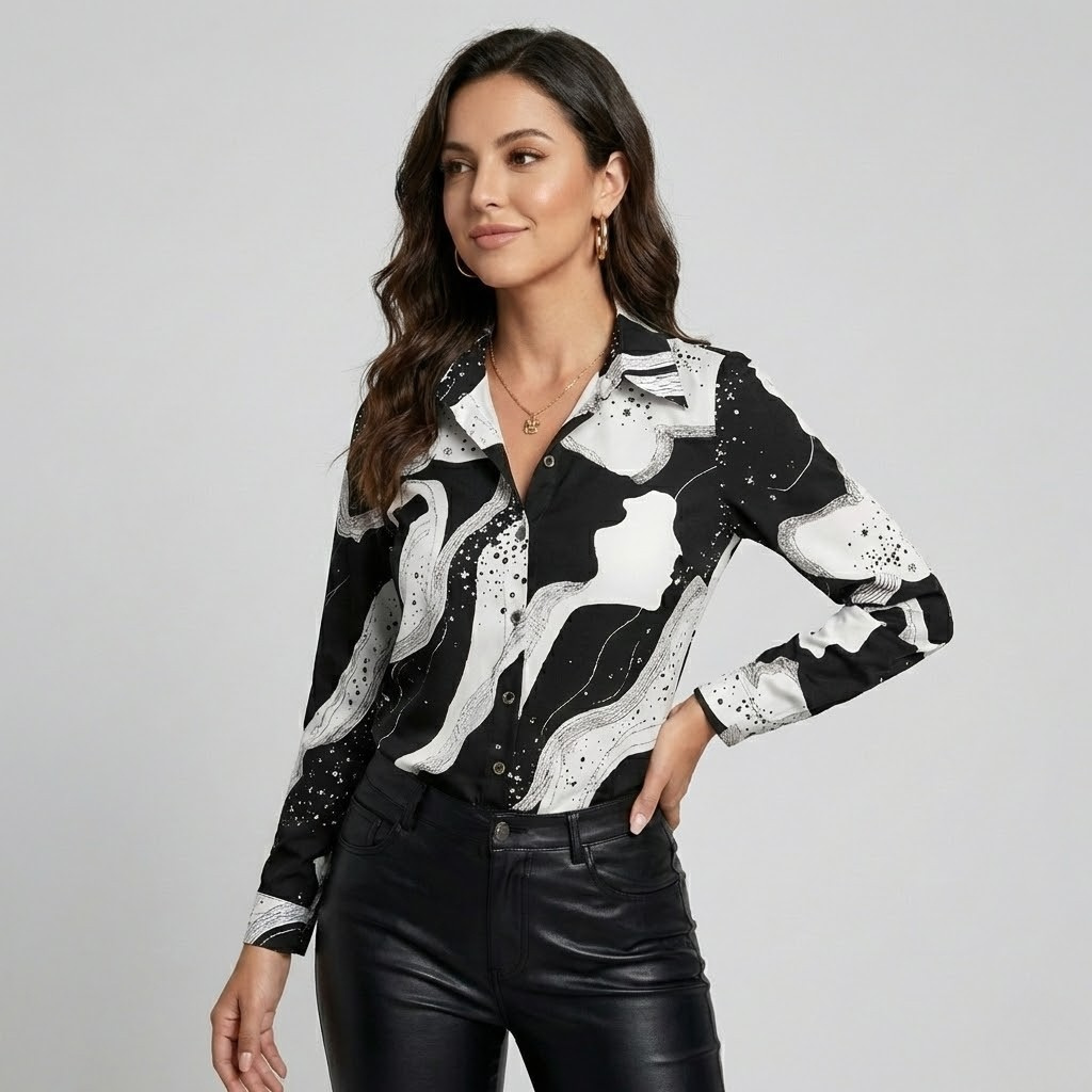 Camisa estampada em mistura de viscose | Corte fluido | Estilo urbano sofisticado
