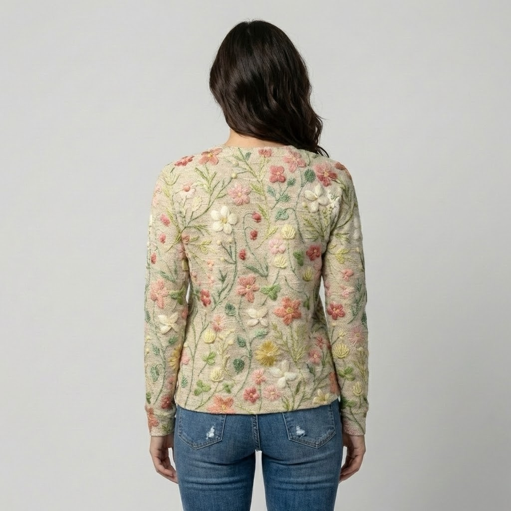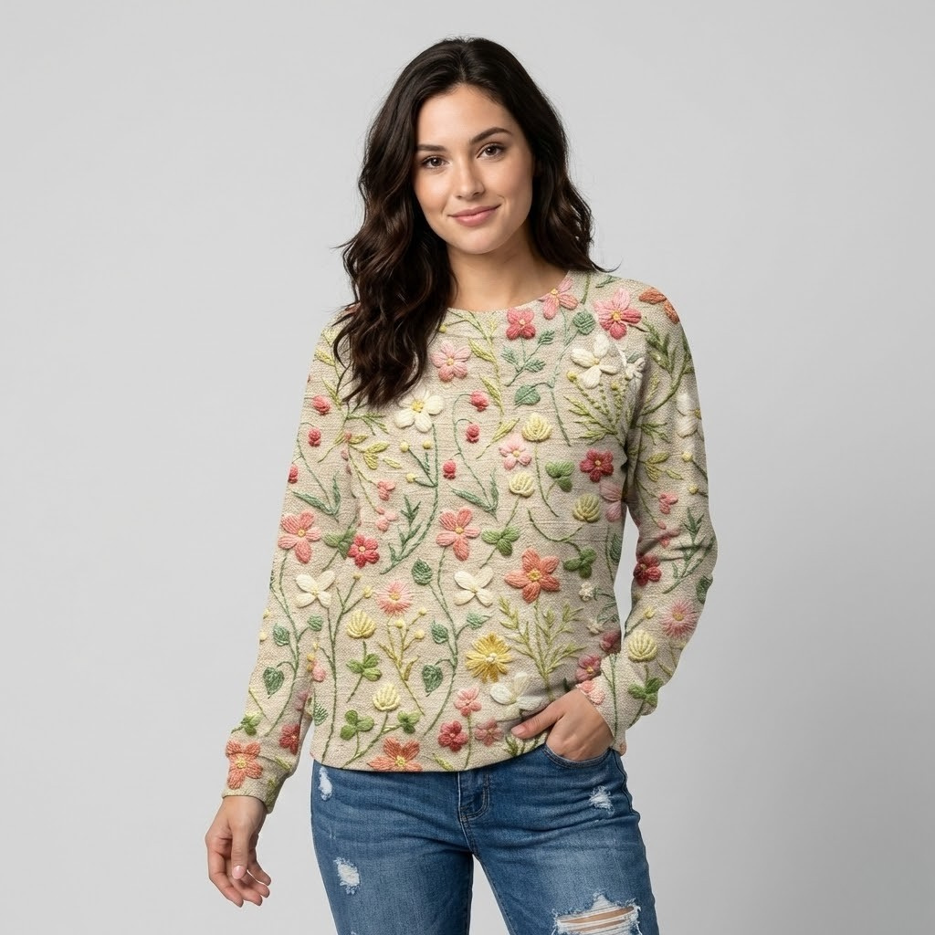 Camisola bordada em mistura de algodão | Corte confortável | Detalhe floral delicado