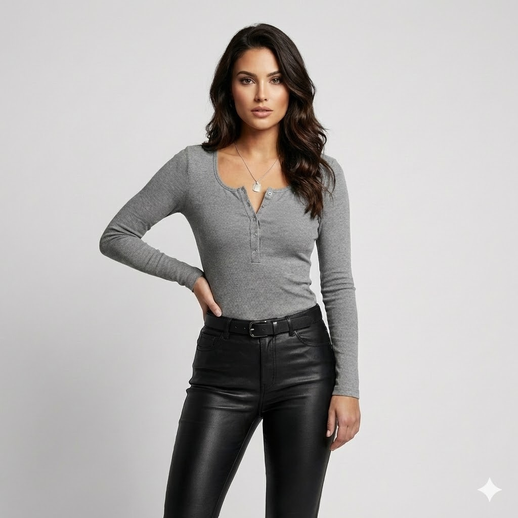Camisola canelada em algodão suave | Corte ajustado | Decote com botões