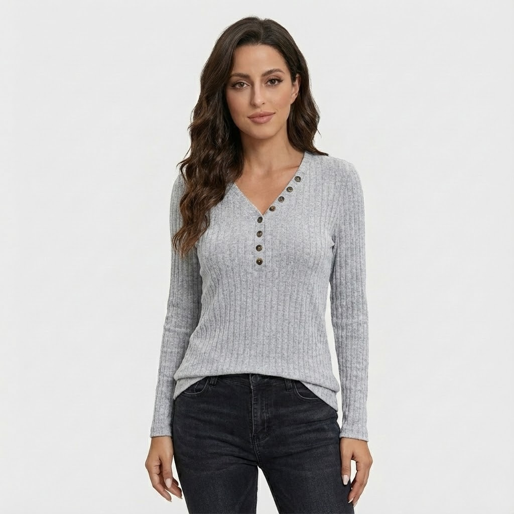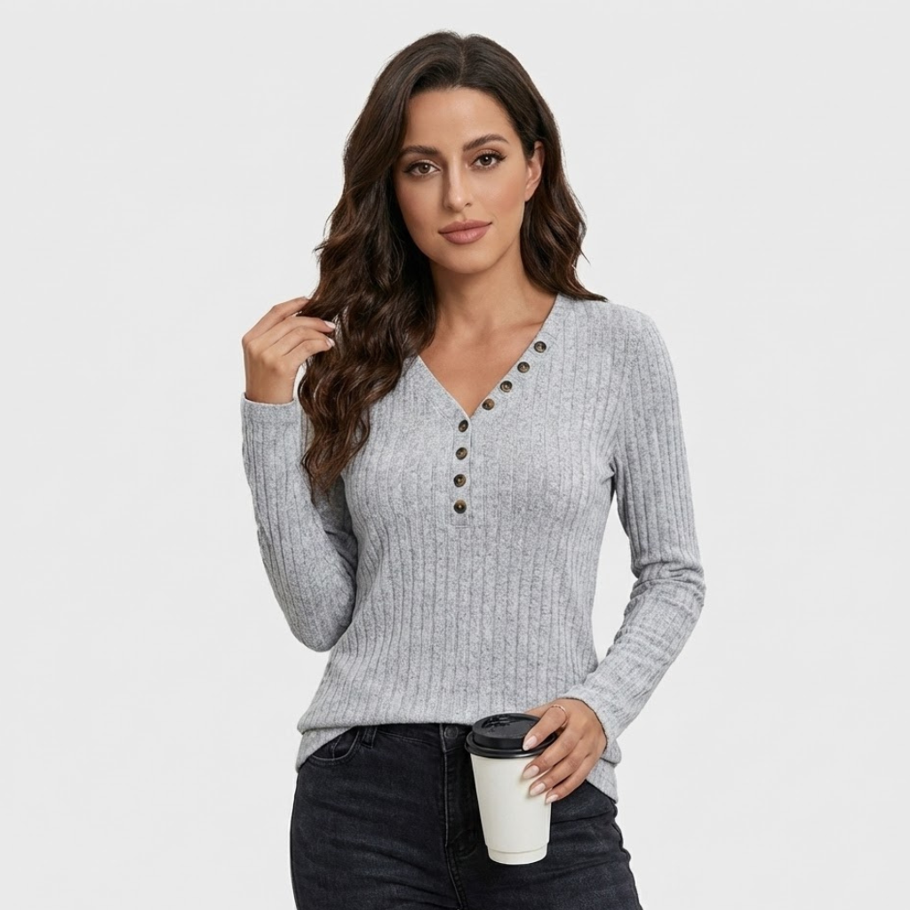 Camisola canelada em mistura de algodão | Corte ajustado | Essencial elegante