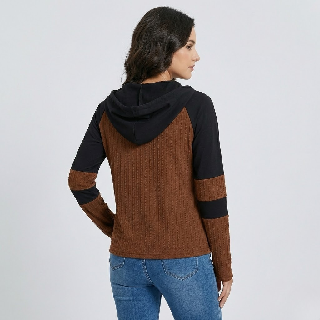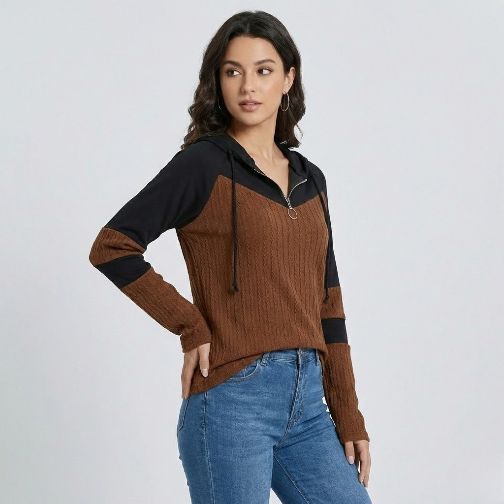 Camisola com capuz em malha texturada | Corte descontraído | Fecho meia-zíper decorativo
