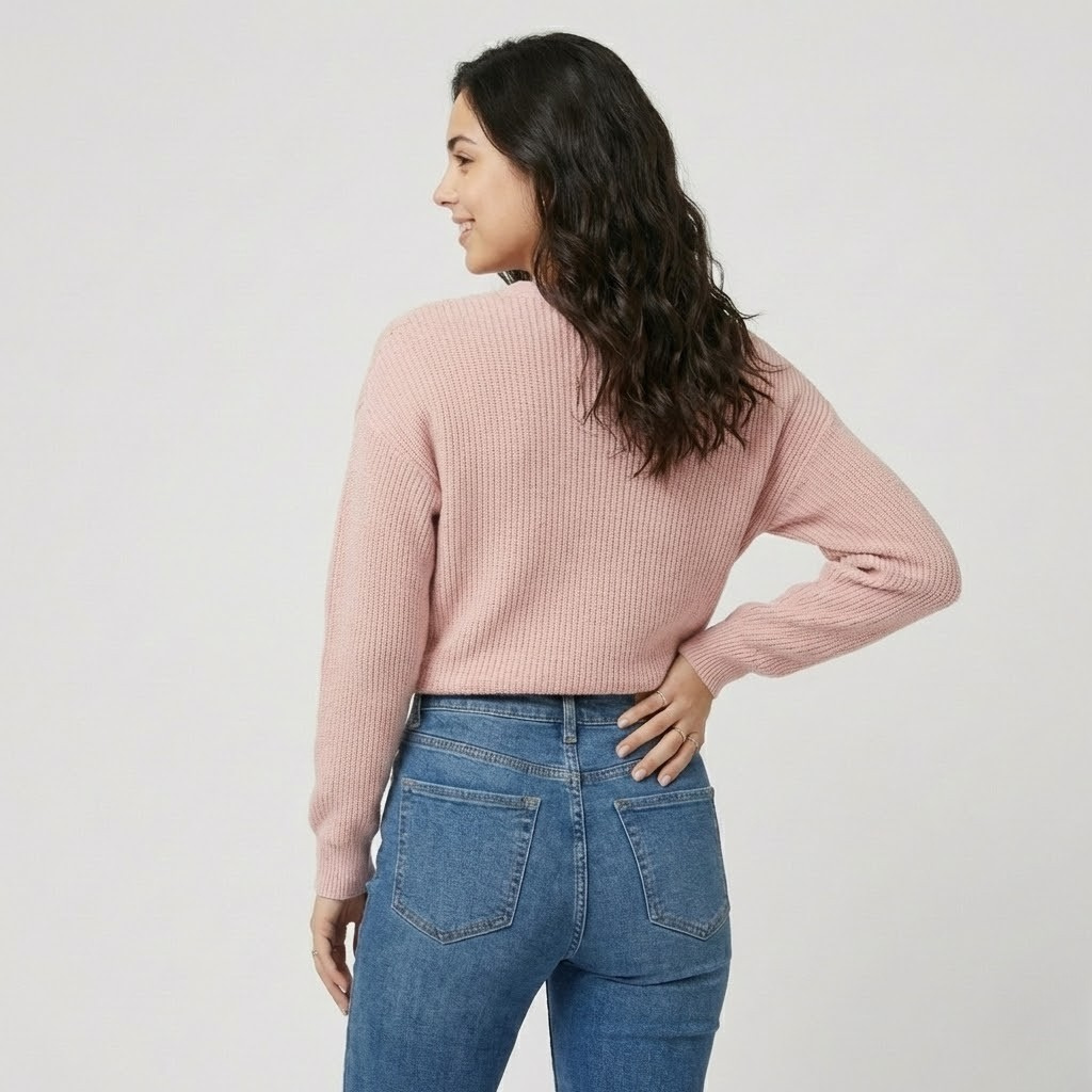 Camisola cruzada em malha canelada | Corte confortável | Decote em V elegante