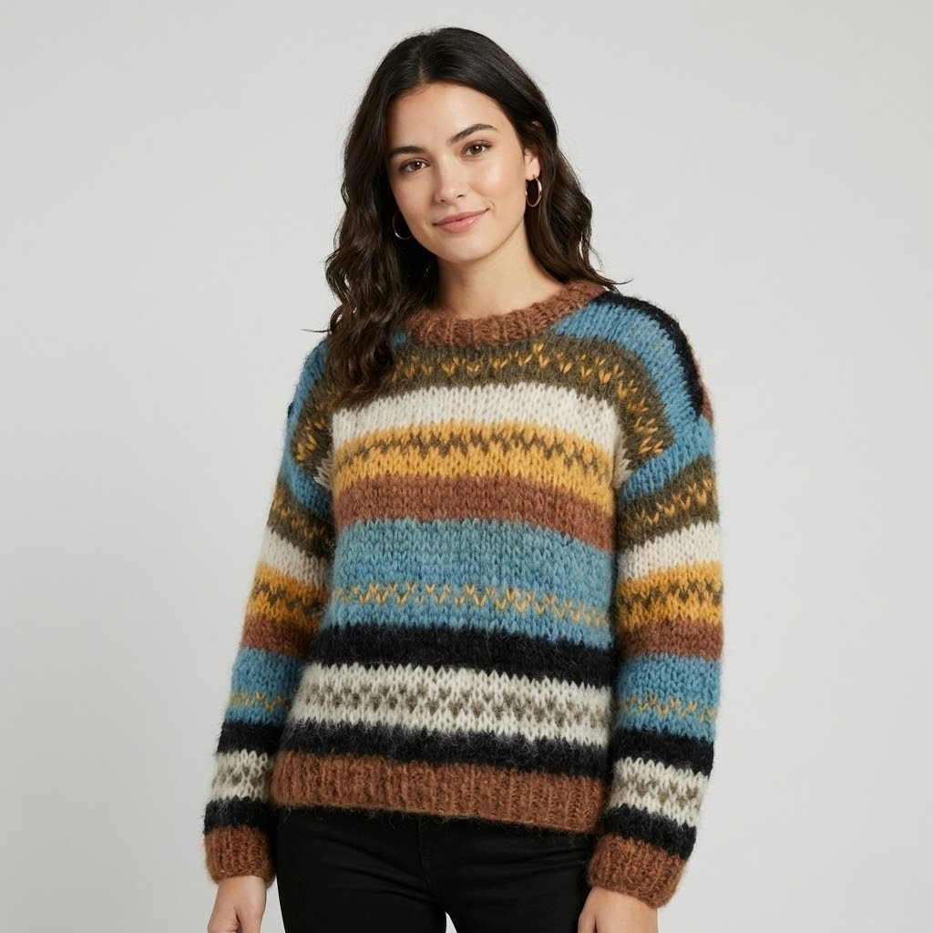 Camisola de malha às riscas em fio suave | Corte confortável | Estilo acolhedor