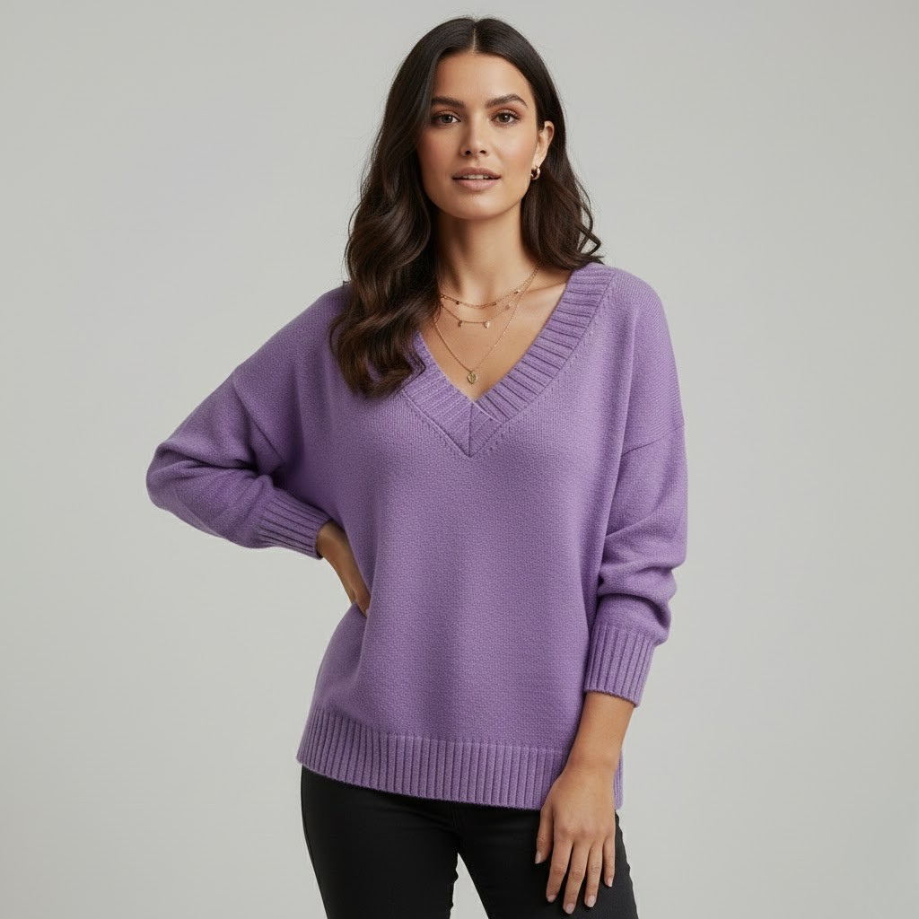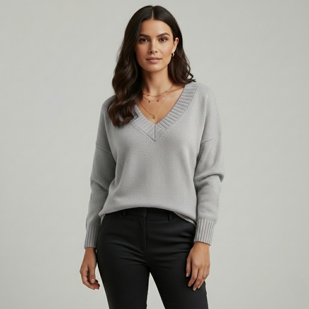 Camisola de malha elegante em mistura suave | Corte descontraído | Decote em V intemporal