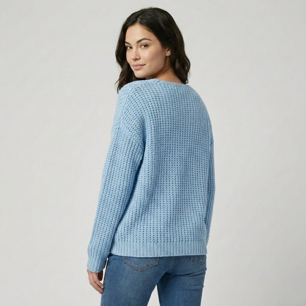 Esta camisola de malha destaca-se pela sua textura envolvente e pelo corte descontraído que garante conforto ao longo do dia. A mistura de lã com um toque de caxemira confere suavidade e calor equilibrado, ideal para dias mais frescos. O decote em V acrescenta leveza à silhueta, tornando-a fácil de conjugar com diferentes peças do guarda-roupa. Versátil e intemporal, adapta-se perfeitamente à moda feminina contemporânea, entre looks casuais e composições mais cuidadas. Uma escolha segura para quem valoriza roupa elegante com um espírito descontraído.