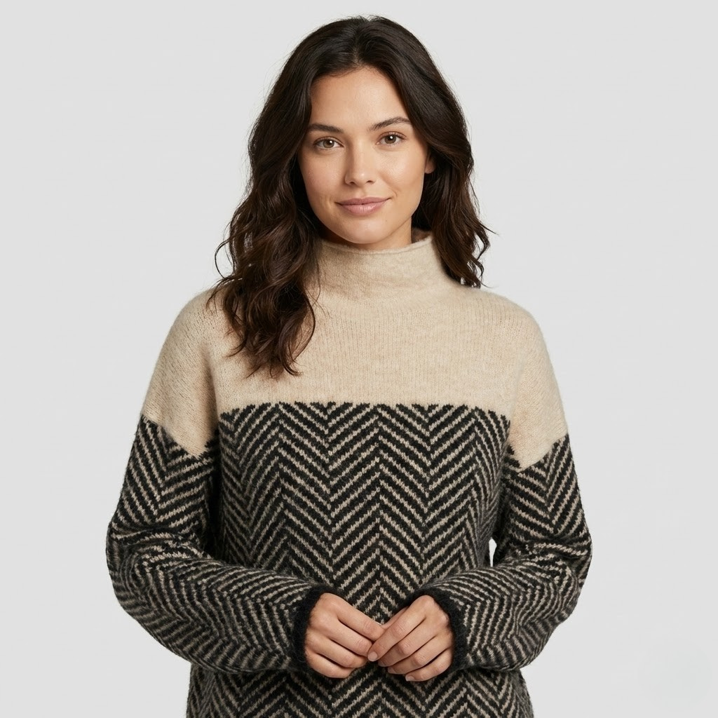 Esta camisola de malha destaca-se pelo seu corte solto e confortável, ideal para um visual descontraído mas cuidado. A mistura de lã confere uma sensação quente e agradável ao toque, perfeita para os dias mais frescos. O padrão gráfico acrescenta carácter à peça, mantendo uma estética equilibrada e contemporânea. Versátil, adapta-se facilmente a coordenados de moda feminina casual ou a propostas mais elegantes do dia-a-dia. Uma escolha prática para quem valoriza conforto sem abdicar de estilo.