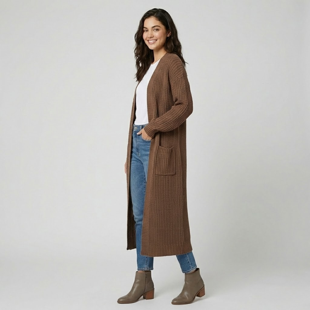 Cardigan longo em malha texturada | Corte solto | Estilo urbano elegante
