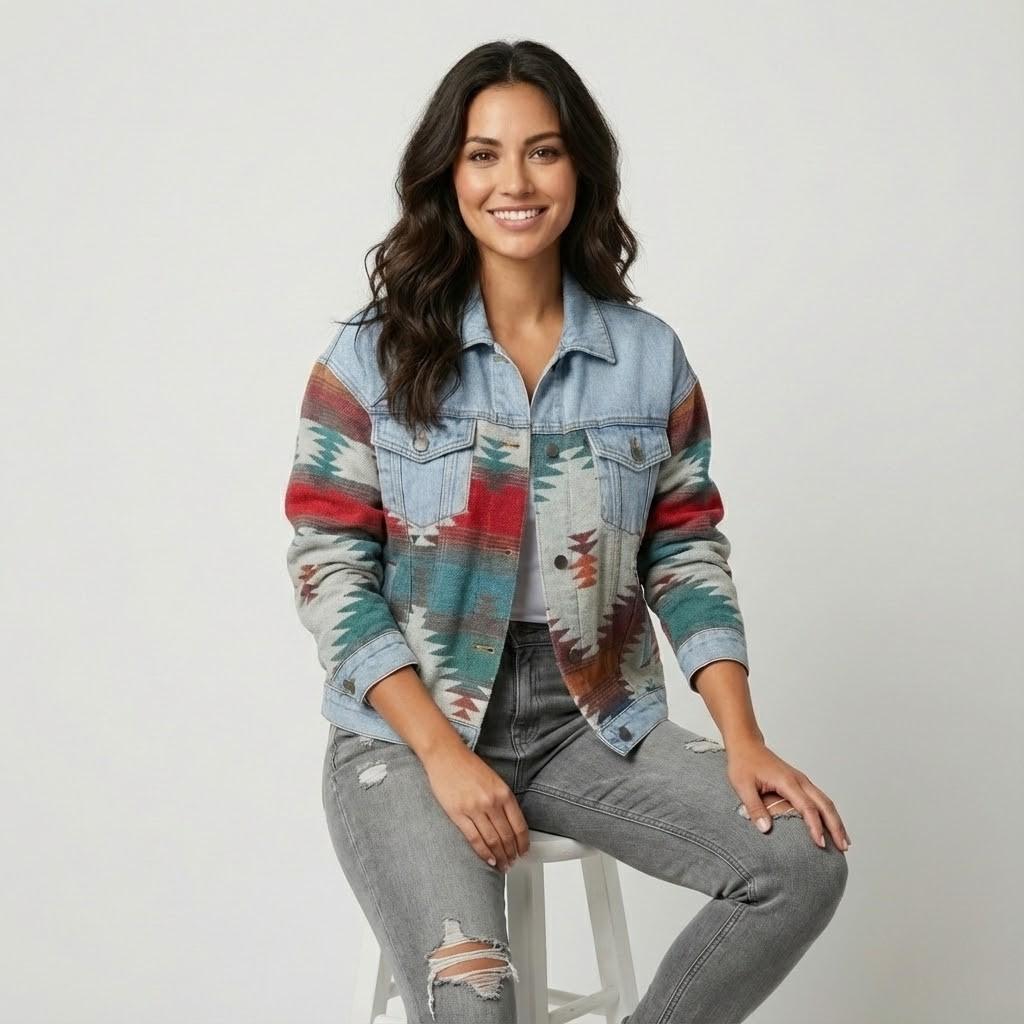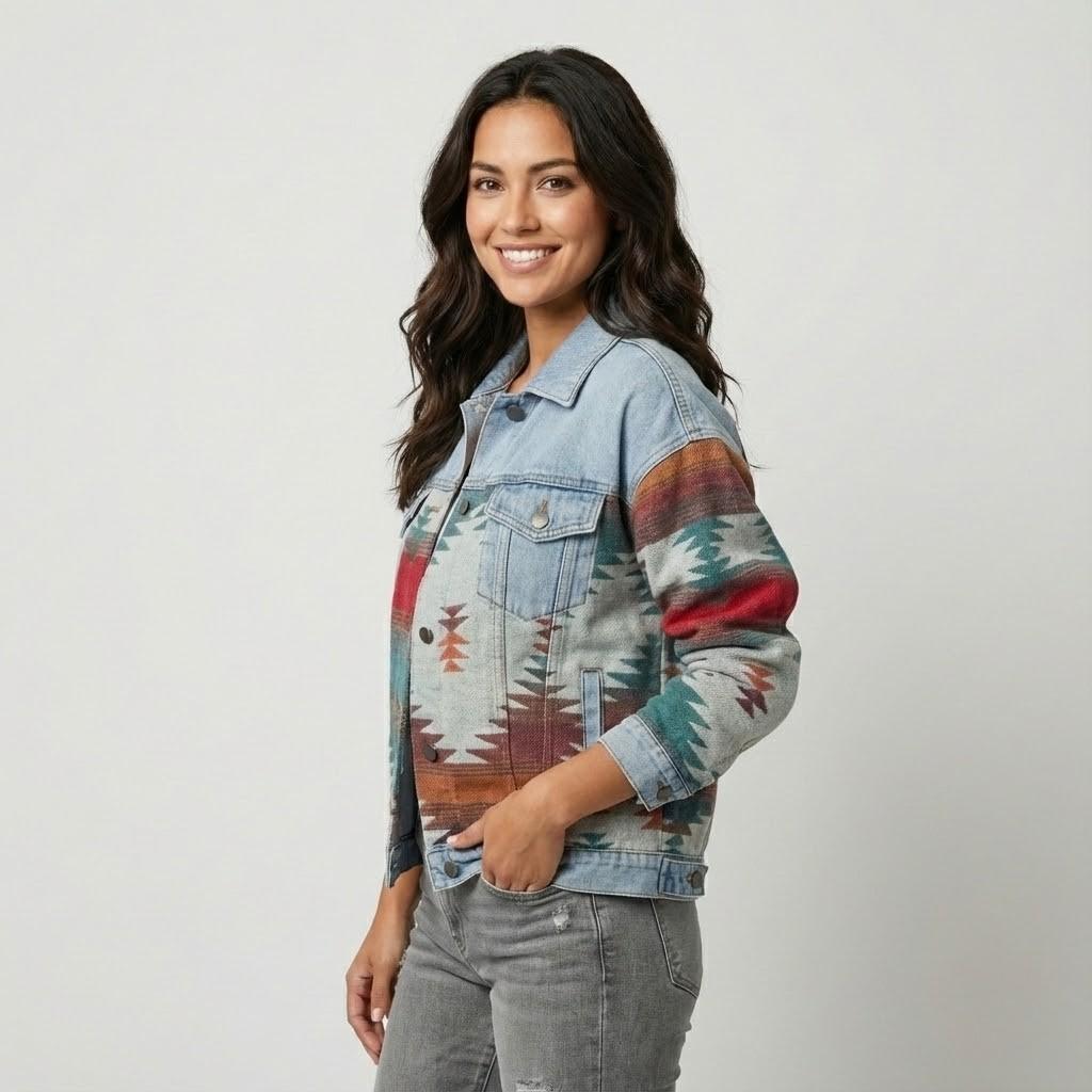 Casaco curto em algodão | Corte direito | Padrão étnico contemporâneo