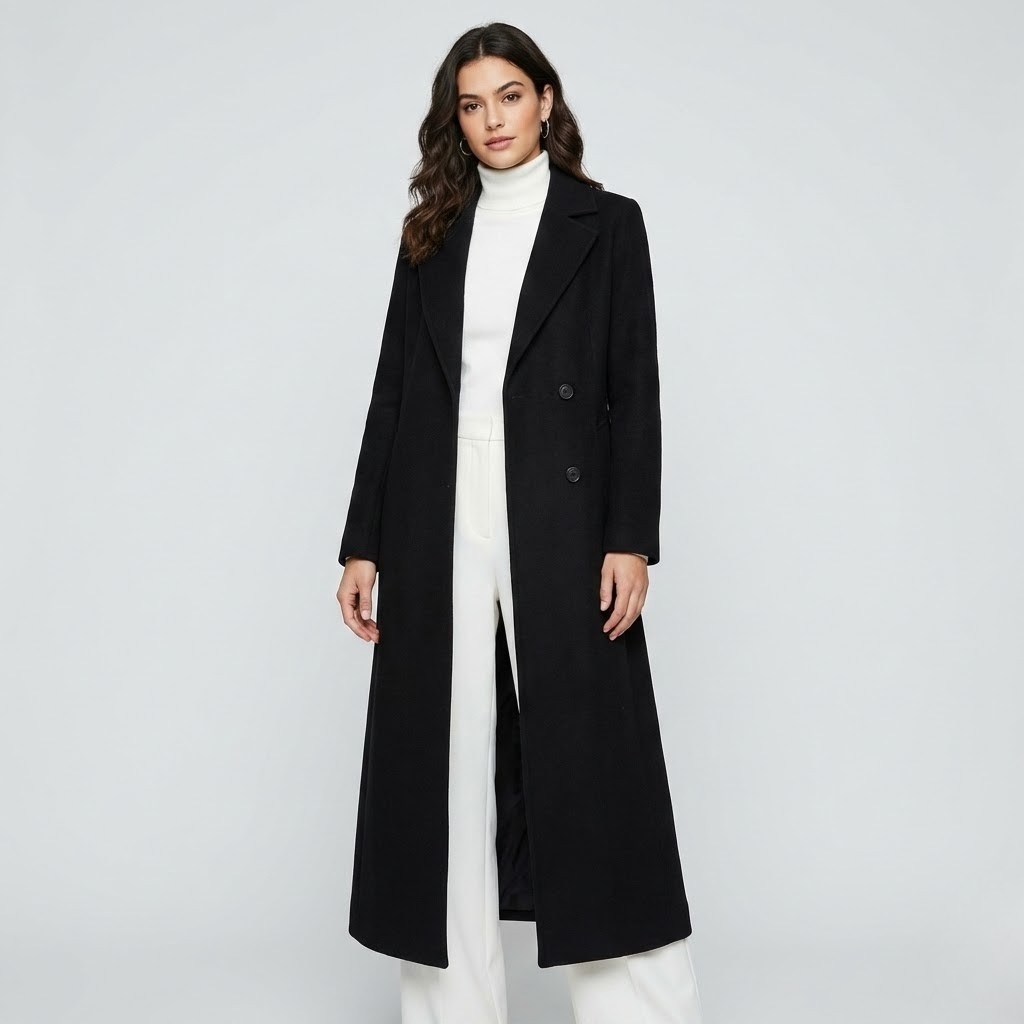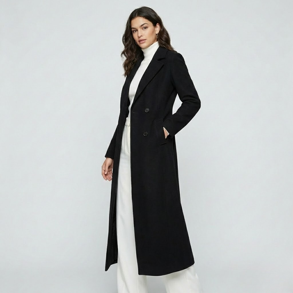 Casaco longo elegante em mistura de lã | Corte fluido | Sofisticação urbana