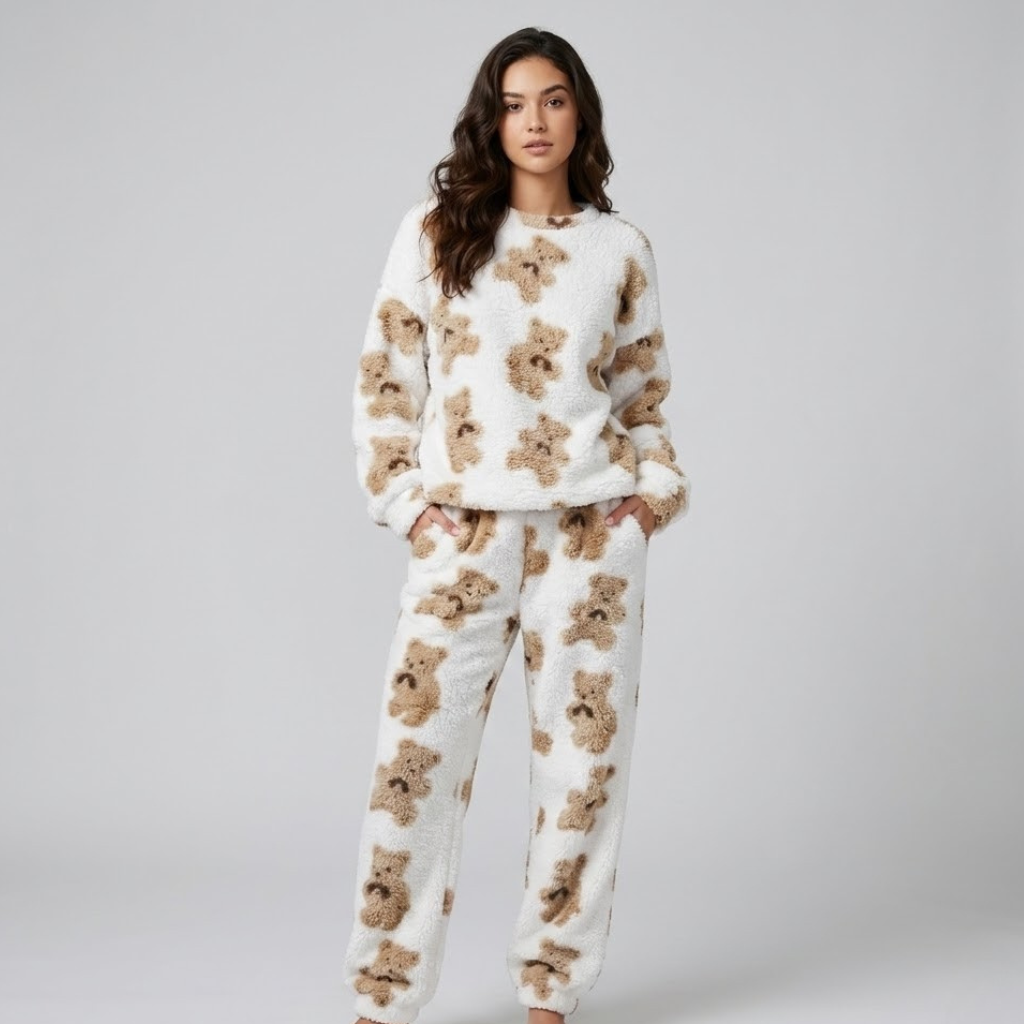 Conjunto de malha felpuda com padrão figurativo | Corte confortável | Conforto aconchegante