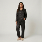 Conjunto pijama acetinado com padrão riscado | Corte fluido | Elegância relaxada