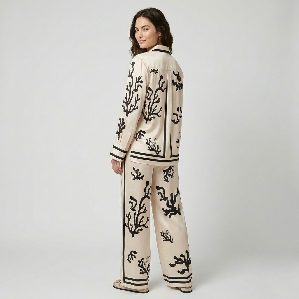 Conjunto sofisticado com estampado artístico | Corte fluido | Elegância descontraída