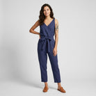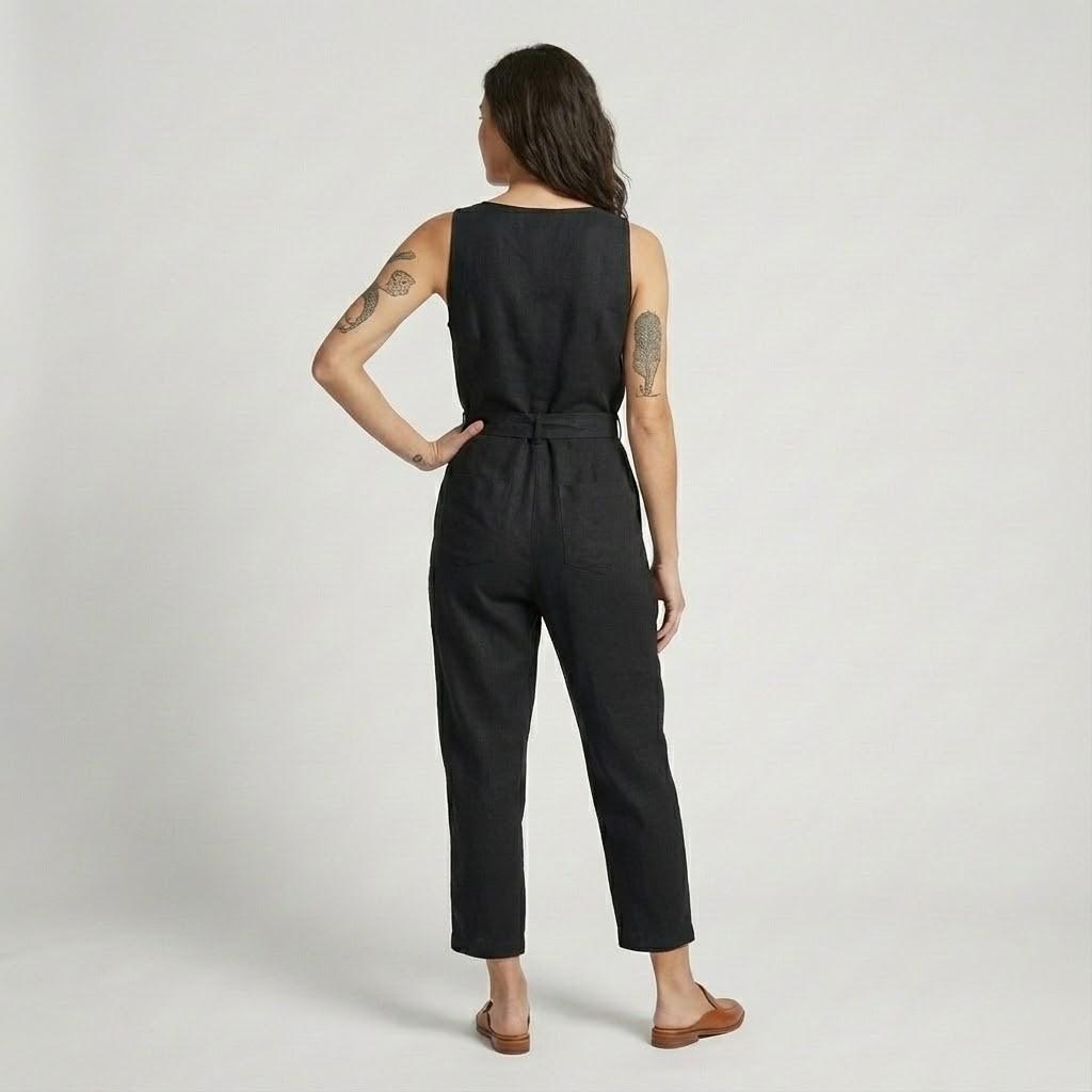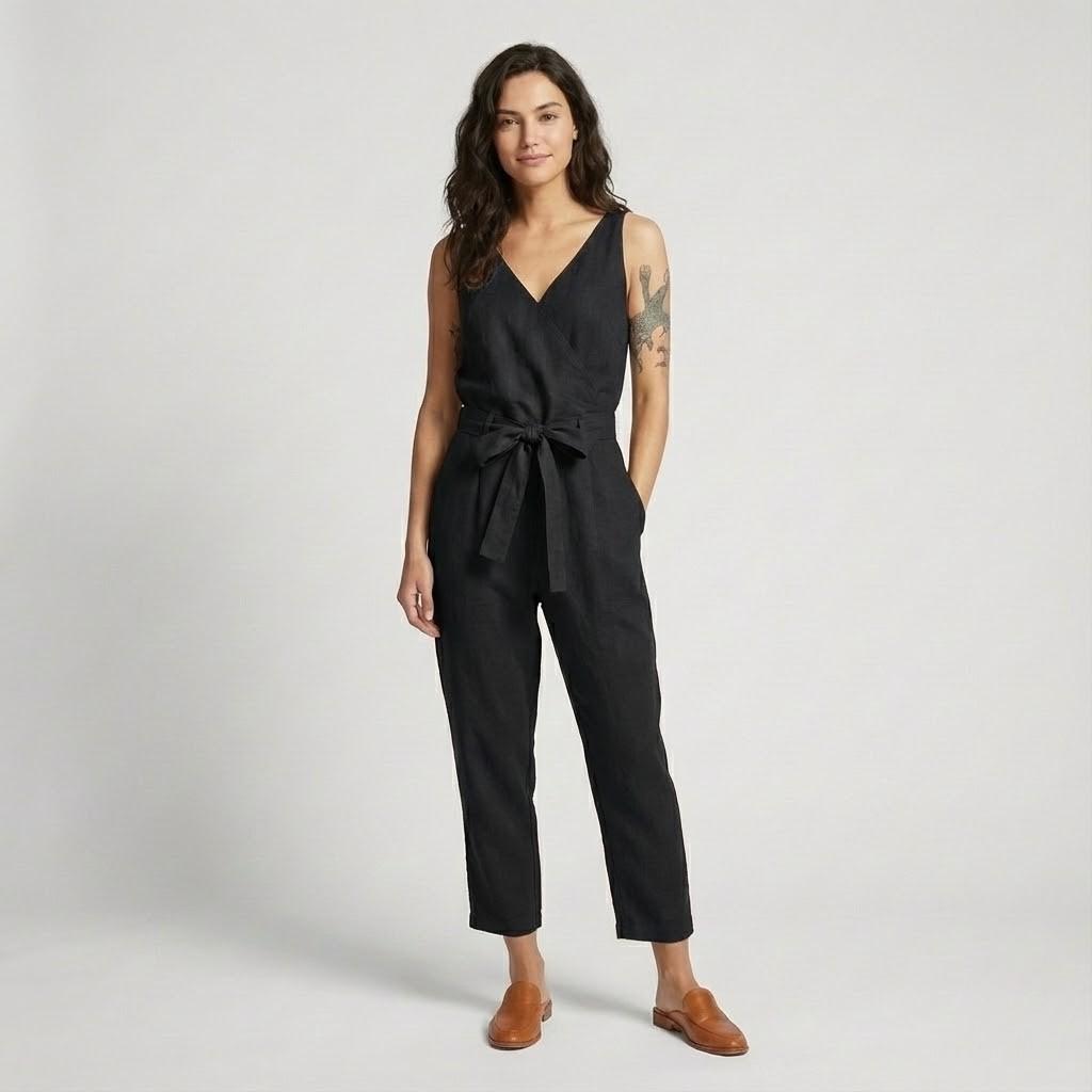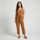Macacão fluido com cinto em mistura de viscose | Corte direito | Decote em V elegante