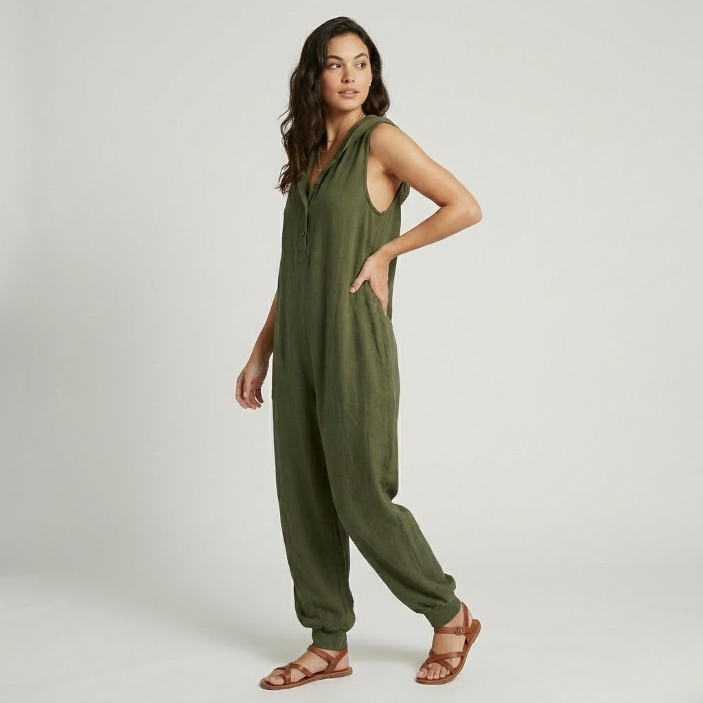 Macacão fluido de verão em tecido natural | Corte solto | Conforto descontraído