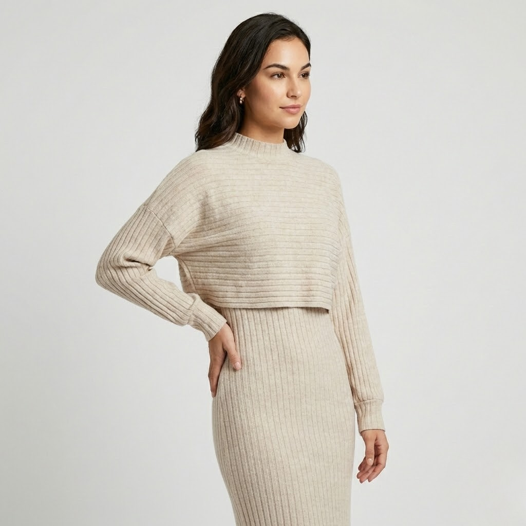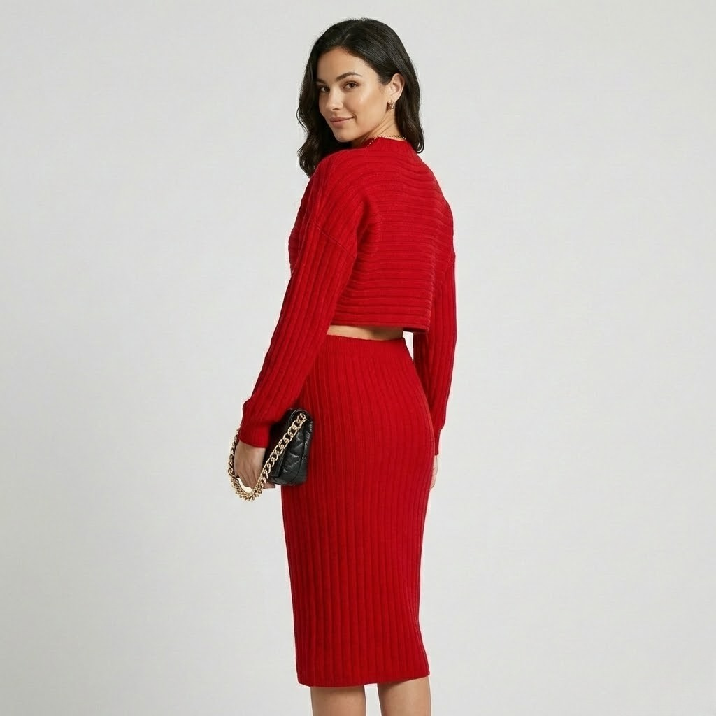 Set elegante em malha canelada | Ajuste feminino | Essencial intemporal