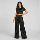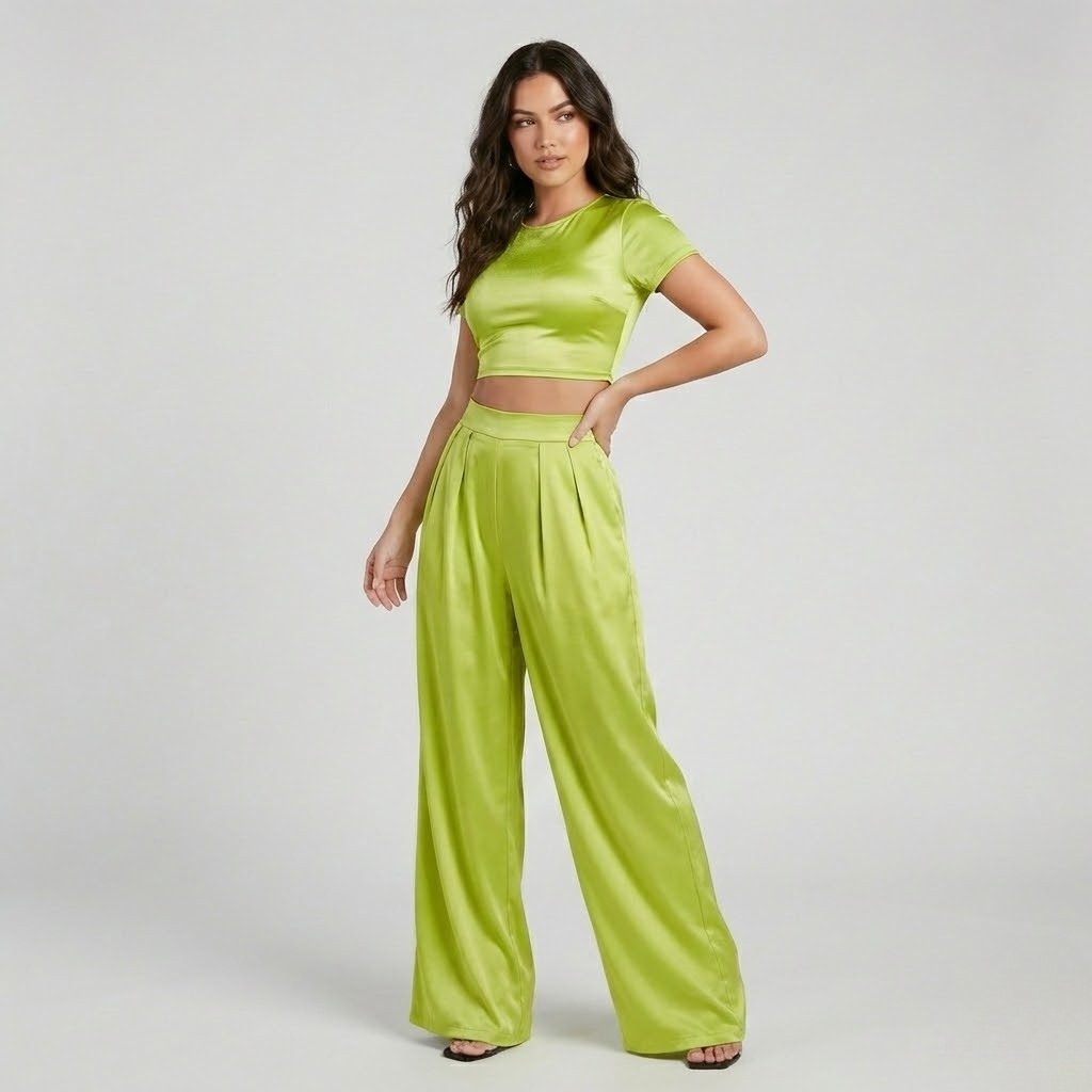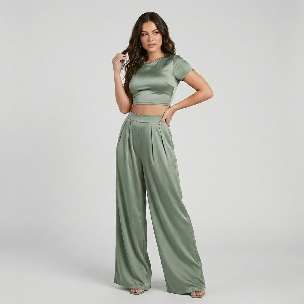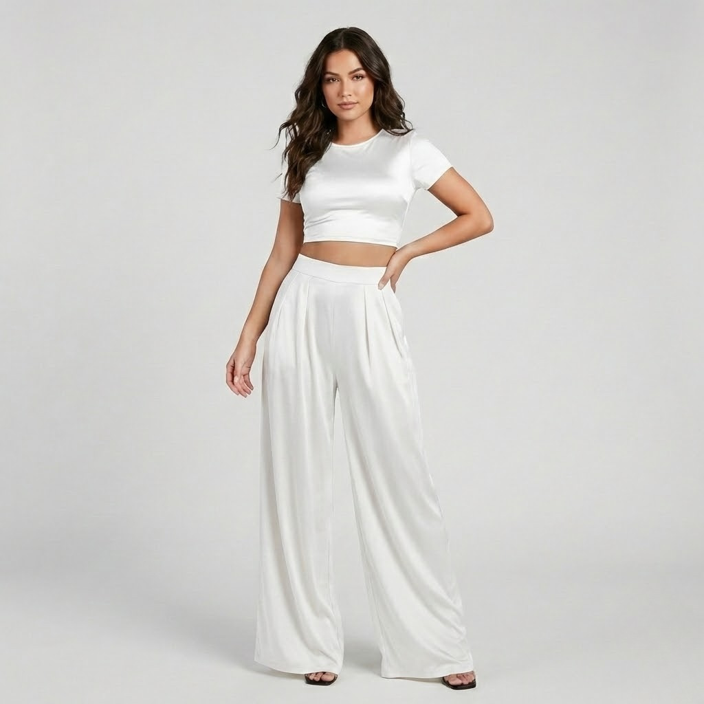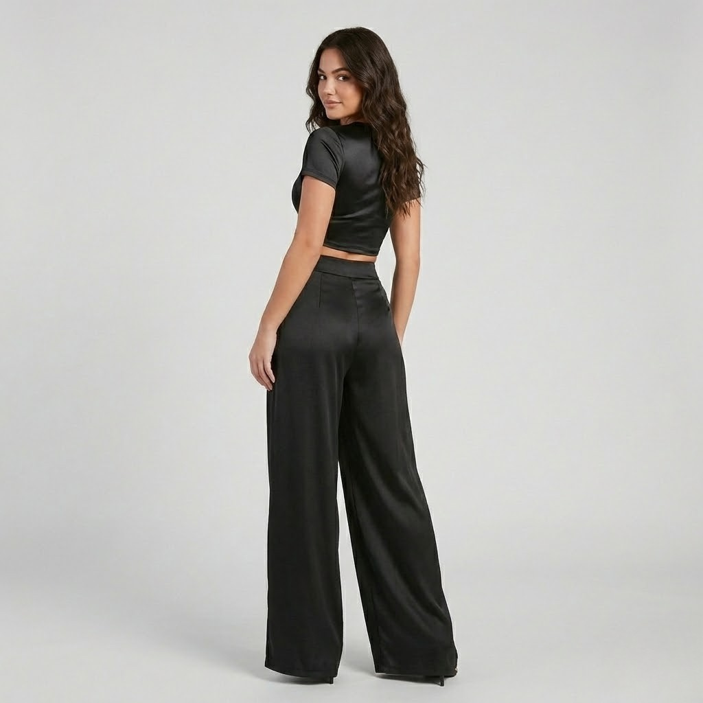 Set fluido contemporâneo | Top curto e calças largas | Elegância moderna