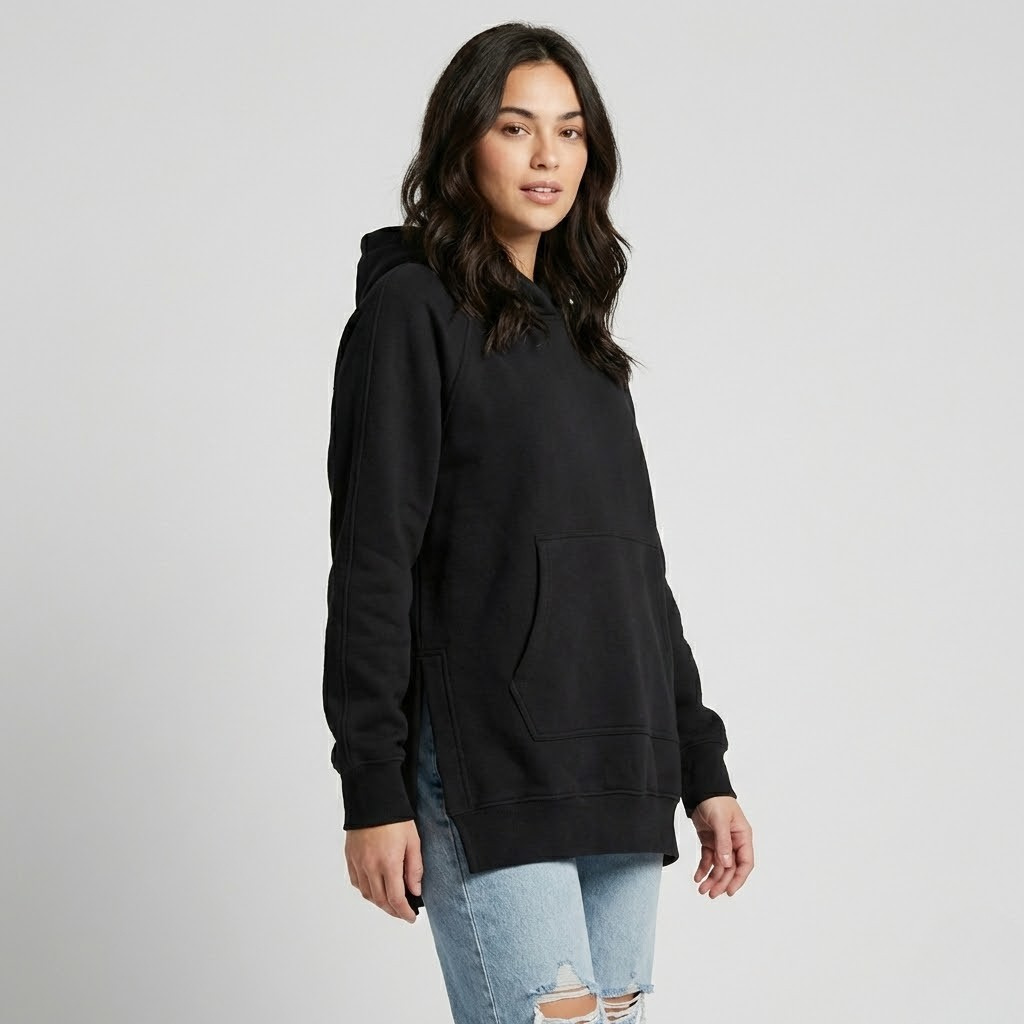 Sweatshirt longa com capuz suave | Corte oversized | Fendas laterais modernas