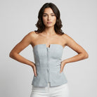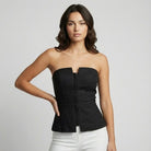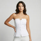 Top bustier elegante em viscose estruturada | Corte cintado com peplum | Sofisticação moderna