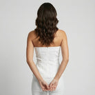 Este top bustier distingue-se pela sua estrutura elegante e pelo corte cintado que realça a silhueta de forma feminina e segura. O design sem alças valoriza o colo e os ombros, enquanto o peplum subtil acrescenta equilíbrio e um toque contemporâneo. O fecho frontal confere carácter e praticidade, reforçando a estética moderna da peça. Versátil e sofisticado, adapta-se facilmente a looks de noite ou a combinações mais urbanas, integrando-se na moda feminina atual e na roupa elegante com personalidade.