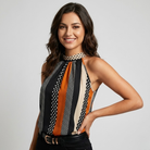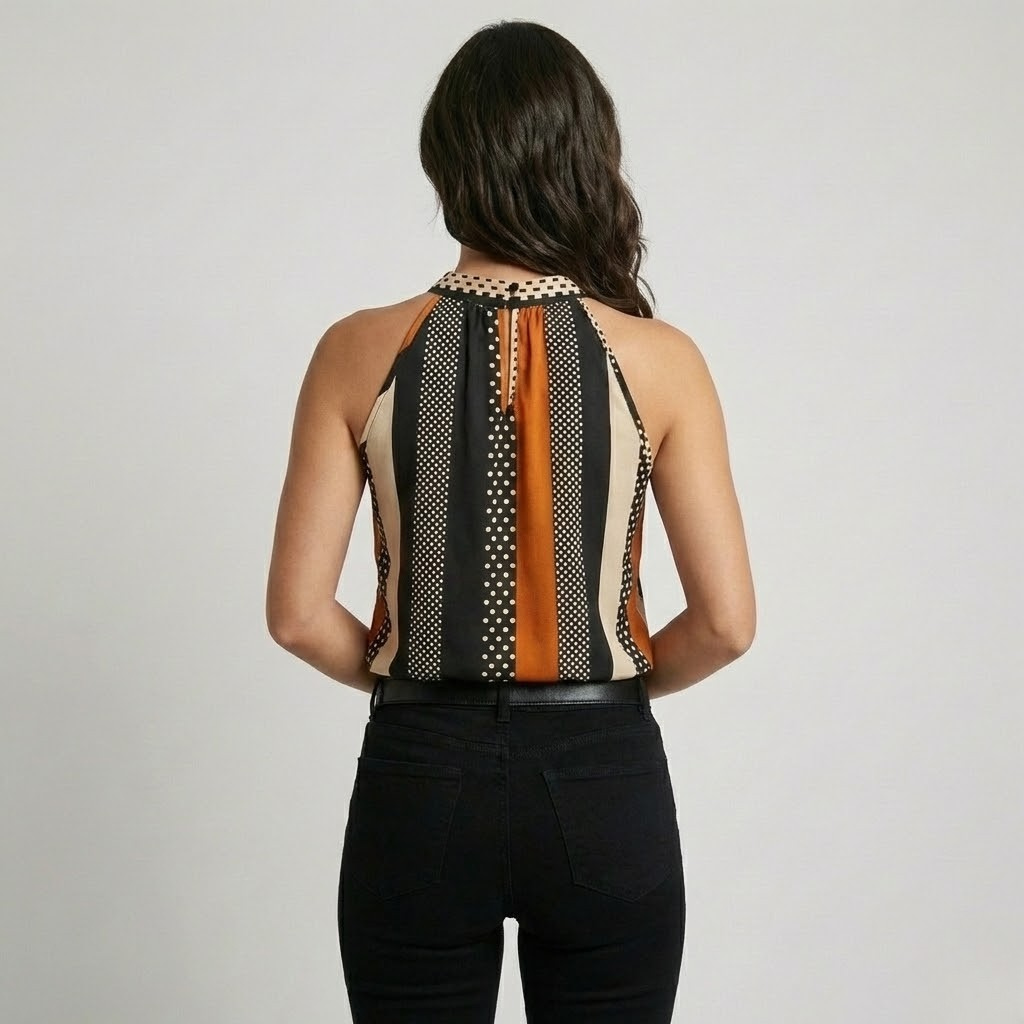 Top fluido estampado em mistura de viscose | Corte direito | Estilo contemporâneo