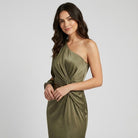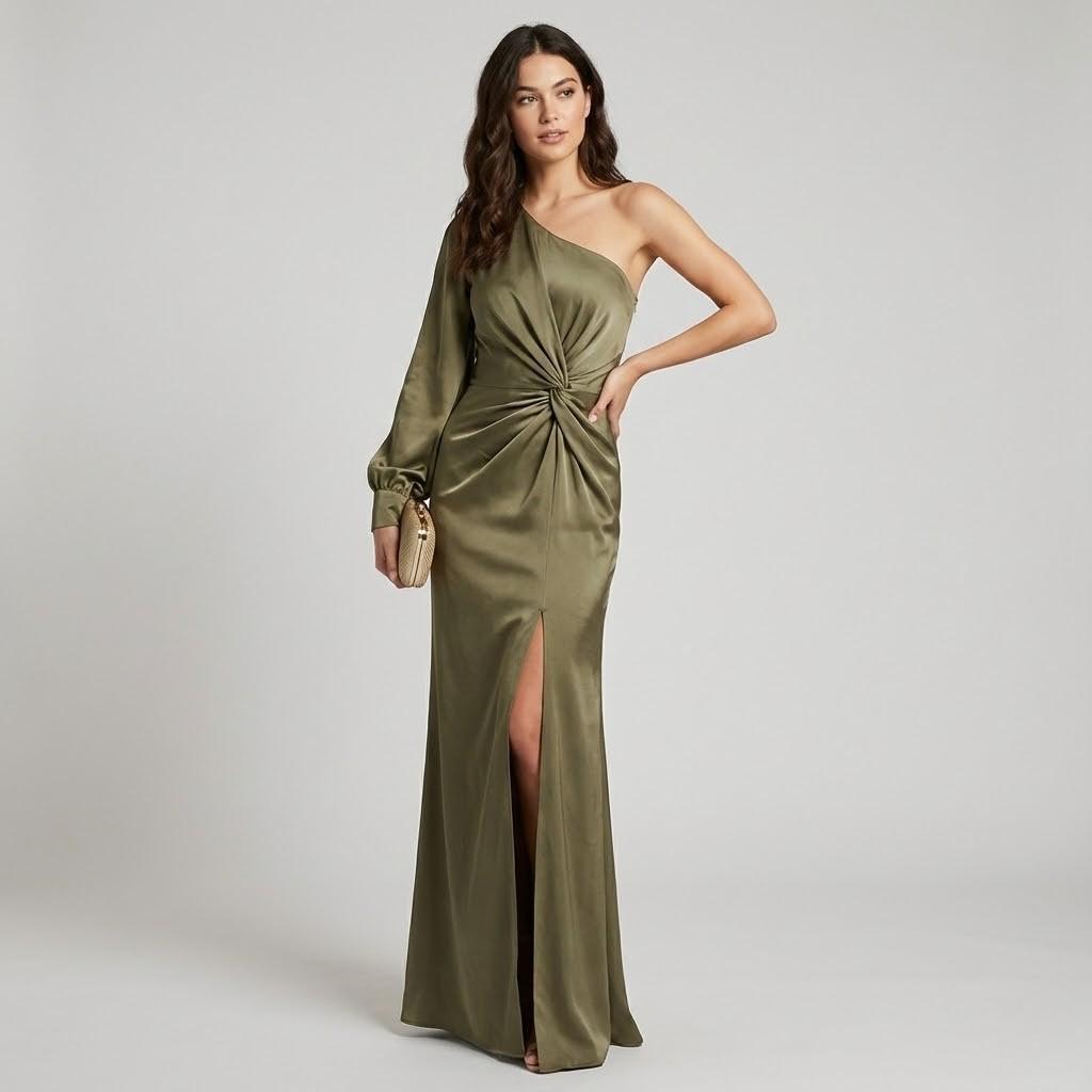 Vestido assimétrico em viscose fluida | Silhueta ajustada | Elegância contemporânea