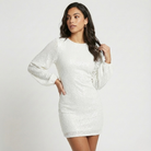 Vestido curto cintado com brilho subtil | Mangas amplas | Elegância noturna