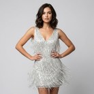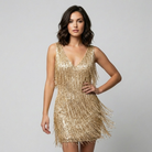 Vestido curto com franjas elegantes | Corte justo | Brilho sofisticado para ocasiões especiais