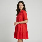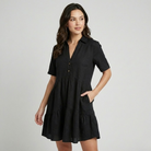 Vestido curto fluido em tecido leve | Corte solto | Design em camadas com botões