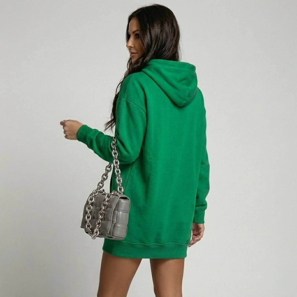 Vestido de malha com capuz em mistura de algodão | Corte descontraído | Estilo urbano feminino