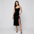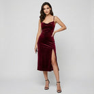 Vestido de noite em veludo suave | Corte ajustado | Abertura lateral sofisticada