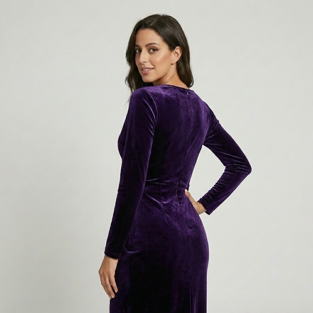 Vestido elegante em veludo suave | Corte justo cruzado | Sofisticação para ocasiões especiais