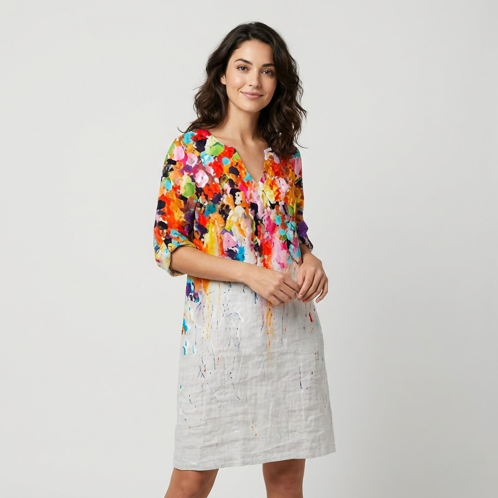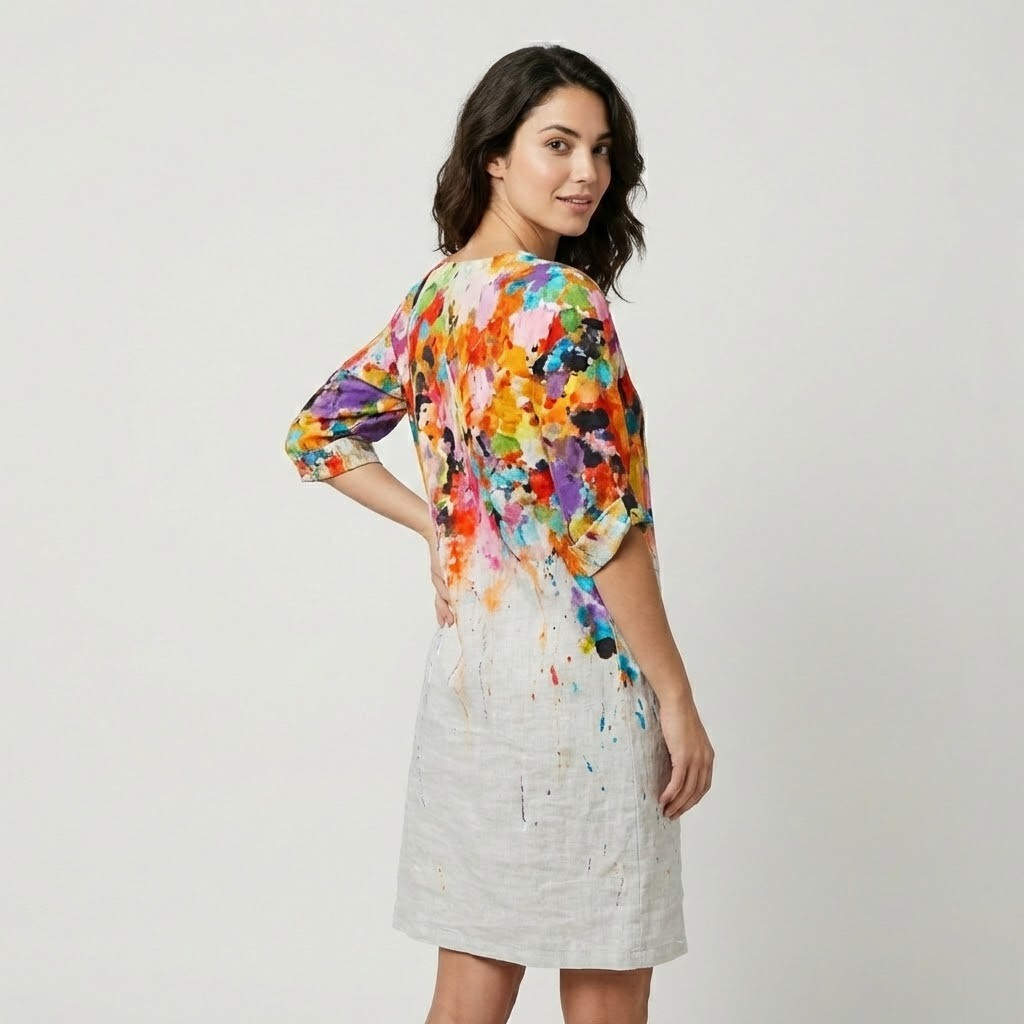 Vestido em linho com detalhe artístico | Corte solto | Estilo casual sofisticado