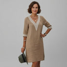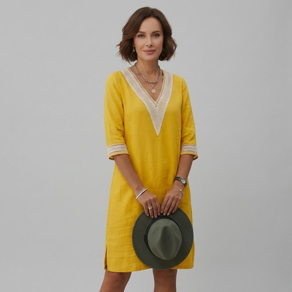 Este vestido feminino de inspiração casual combina simplicidade e sofisticação num design intemporal, perfeito para quem valoriza conforto e estilo natural. O corte direito oferece um caimento fluido e equilibrado, enquanto o decote em V alonga visualmente a silhueta e acrescenta um toque feminino subtil. O tecido leve e respirável torna esta peça ideal para dias quentes, momentos de lazer ou contextos informais com um cuidado estético apurado. Versátil e fácil de usar, adapta-se a diferentes ocasiões, integrando-se facilmente em looks de moda feminina casual, urbana ou de verão.