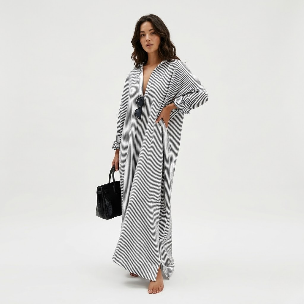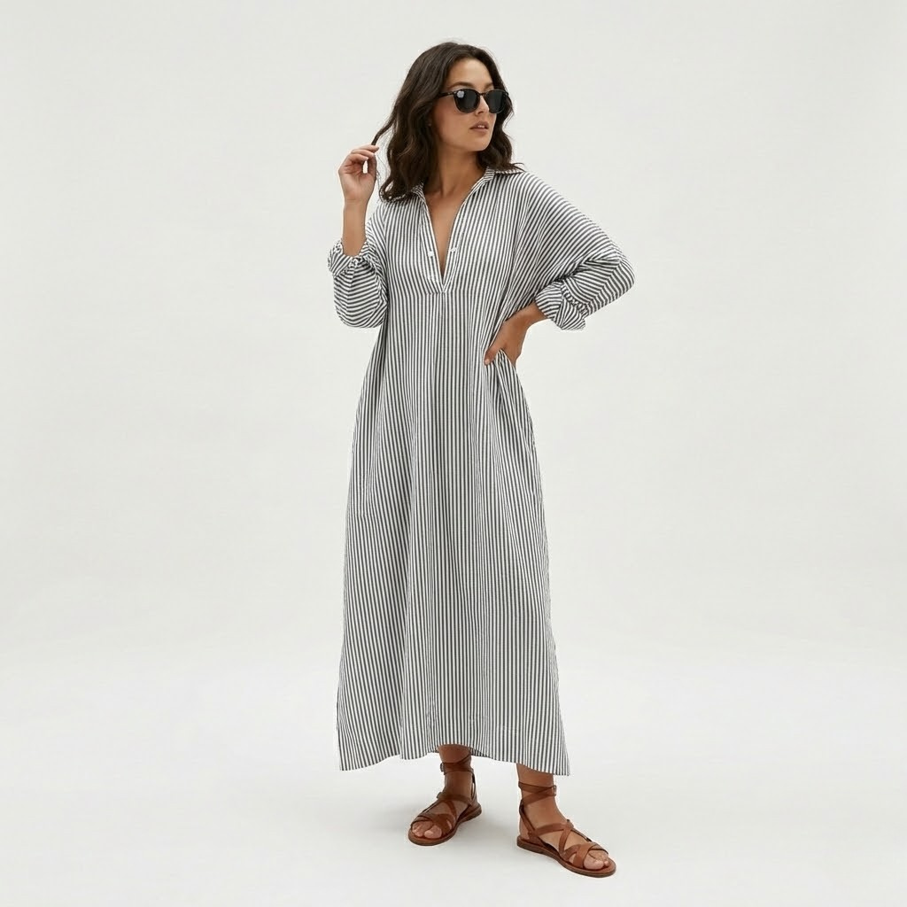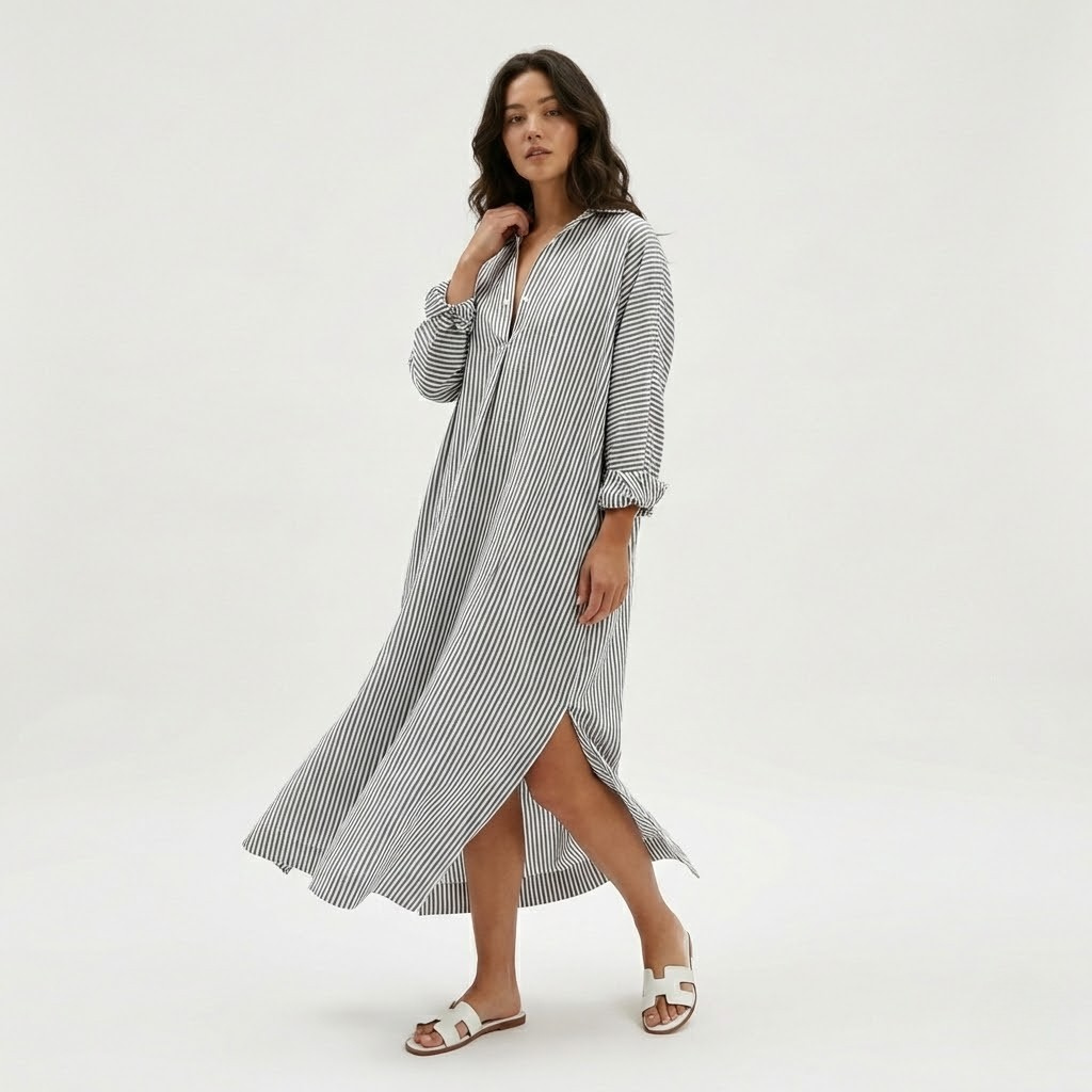 Vestido fluido em mistura de algodão | Corte amplo | Elegância descontraída para o quotidiano