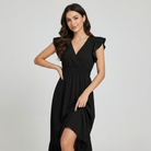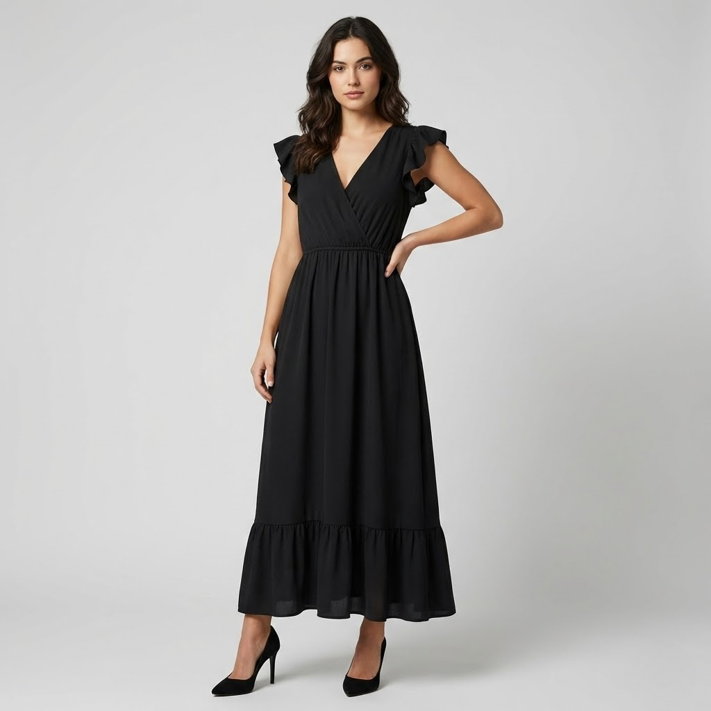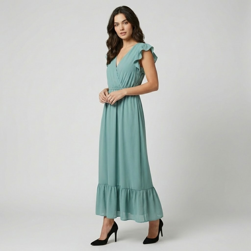 Vestido fluido em mistura de viscose | Cintura marcada | Elegância leve para o quotidiano