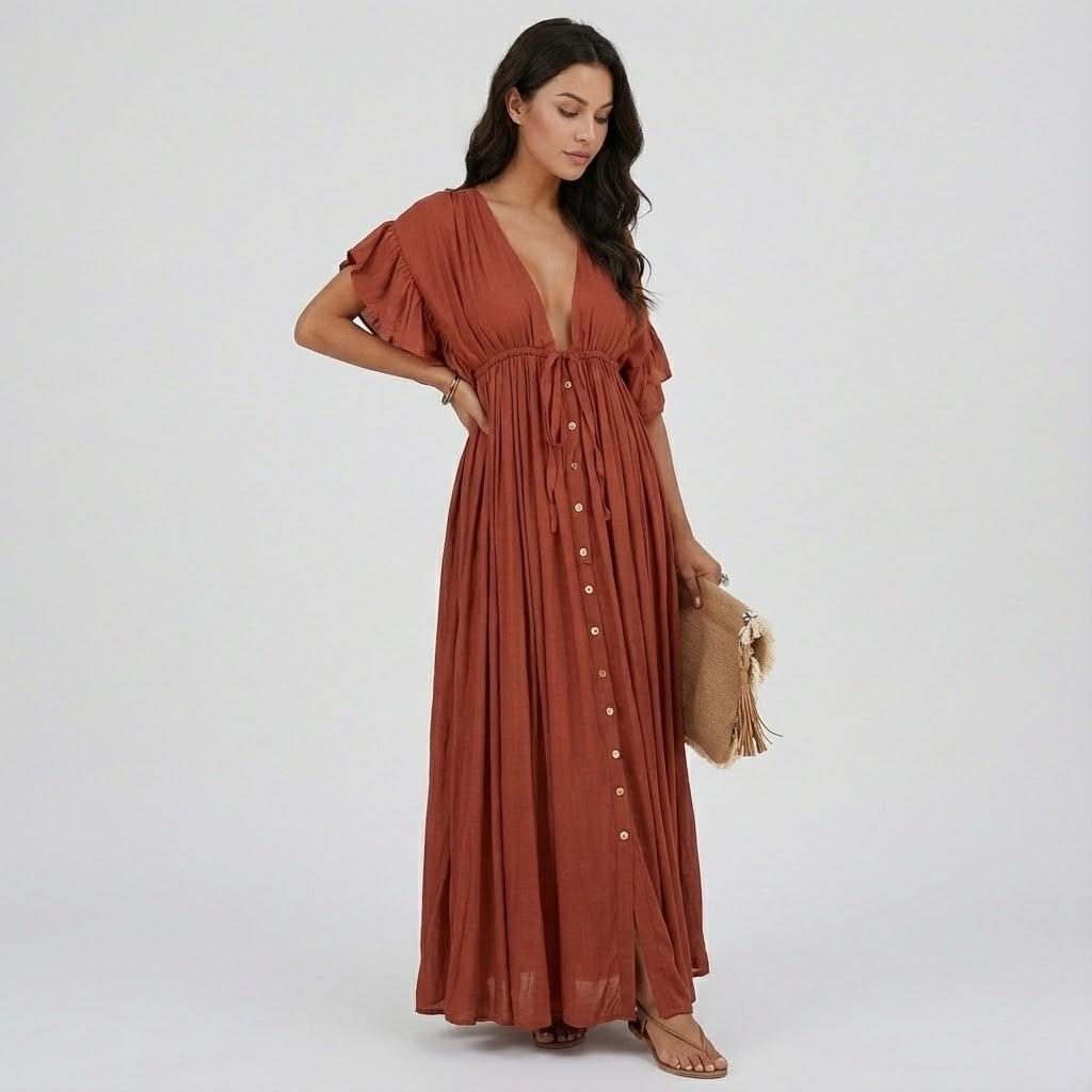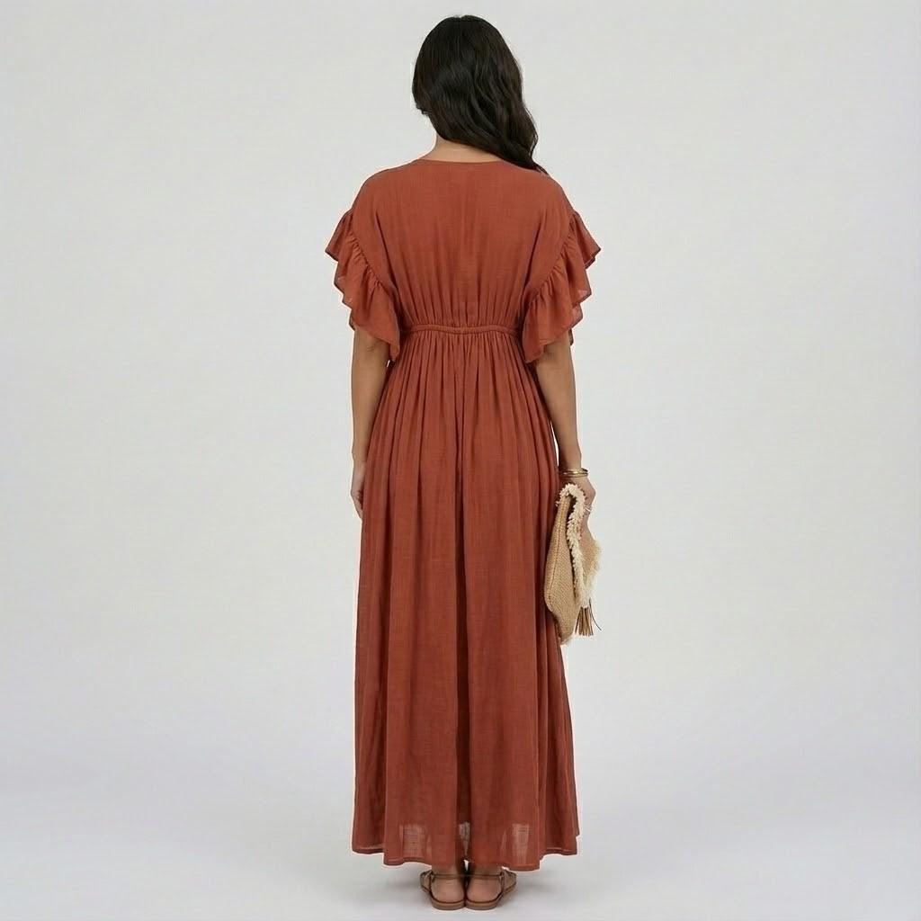 Vestido fluido em mistura de viscose | Cintura marcada | Estilo casual elegante
