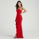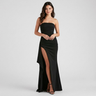 Vestido longo elegante em mistura fluida | Corte justo | Abertura lateral sofisticada