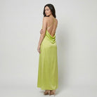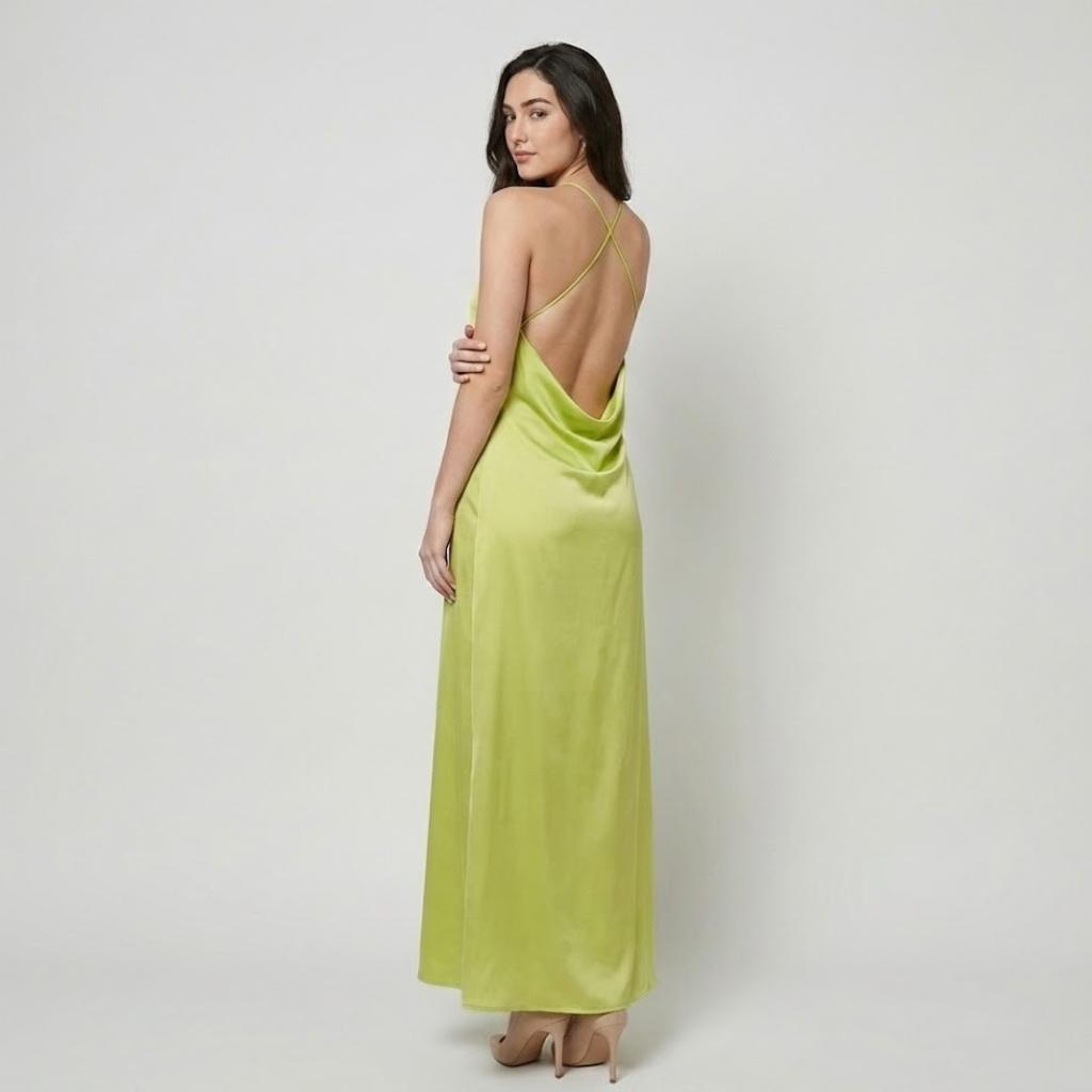 Vestido longo fluido com decote halter | Corte direito | Elegância leve e contemporânea