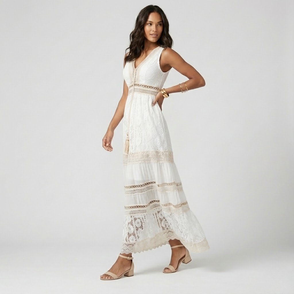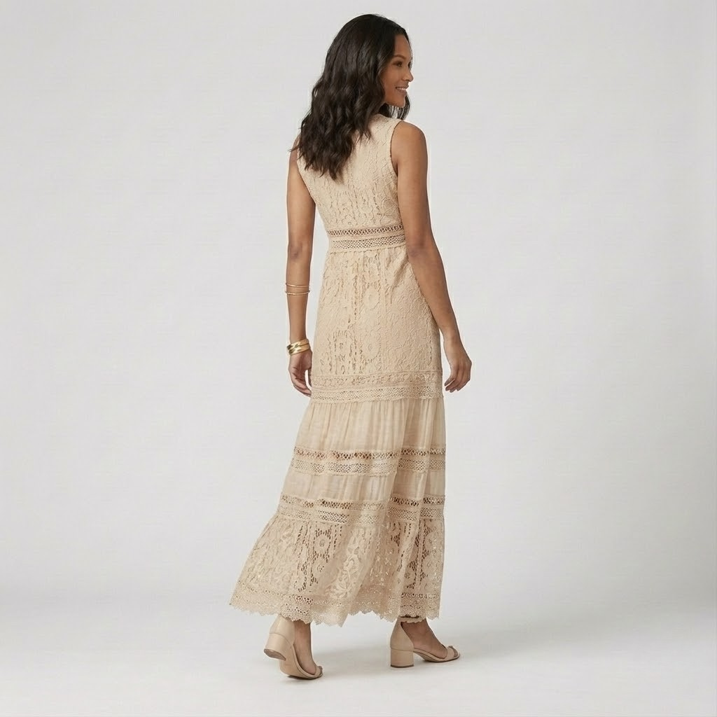 Vestido maxi boémio em tecido leve | Decote em V | Elegância natural