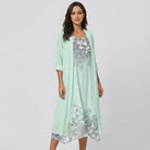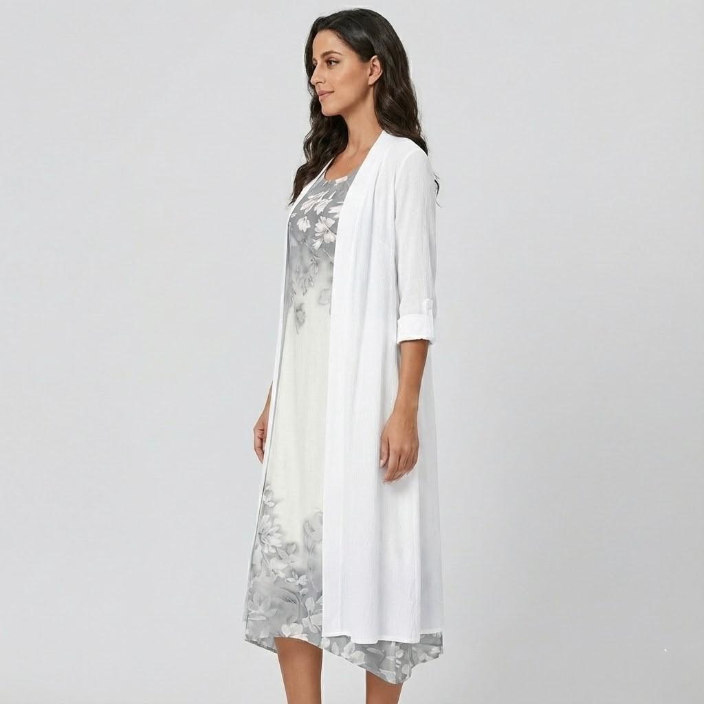 Vestido midi elegante com aplicação floral | Corte fluido | Sofisticação intemporal