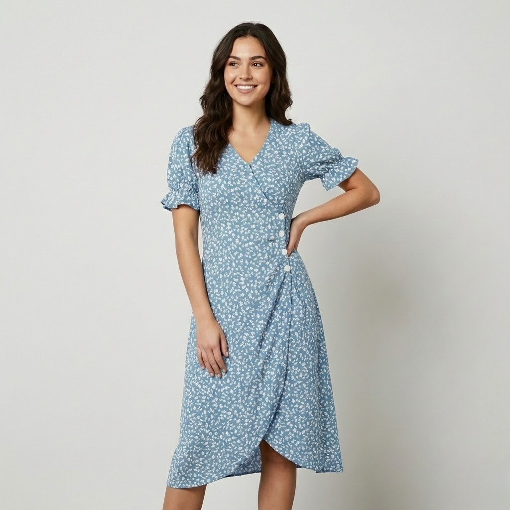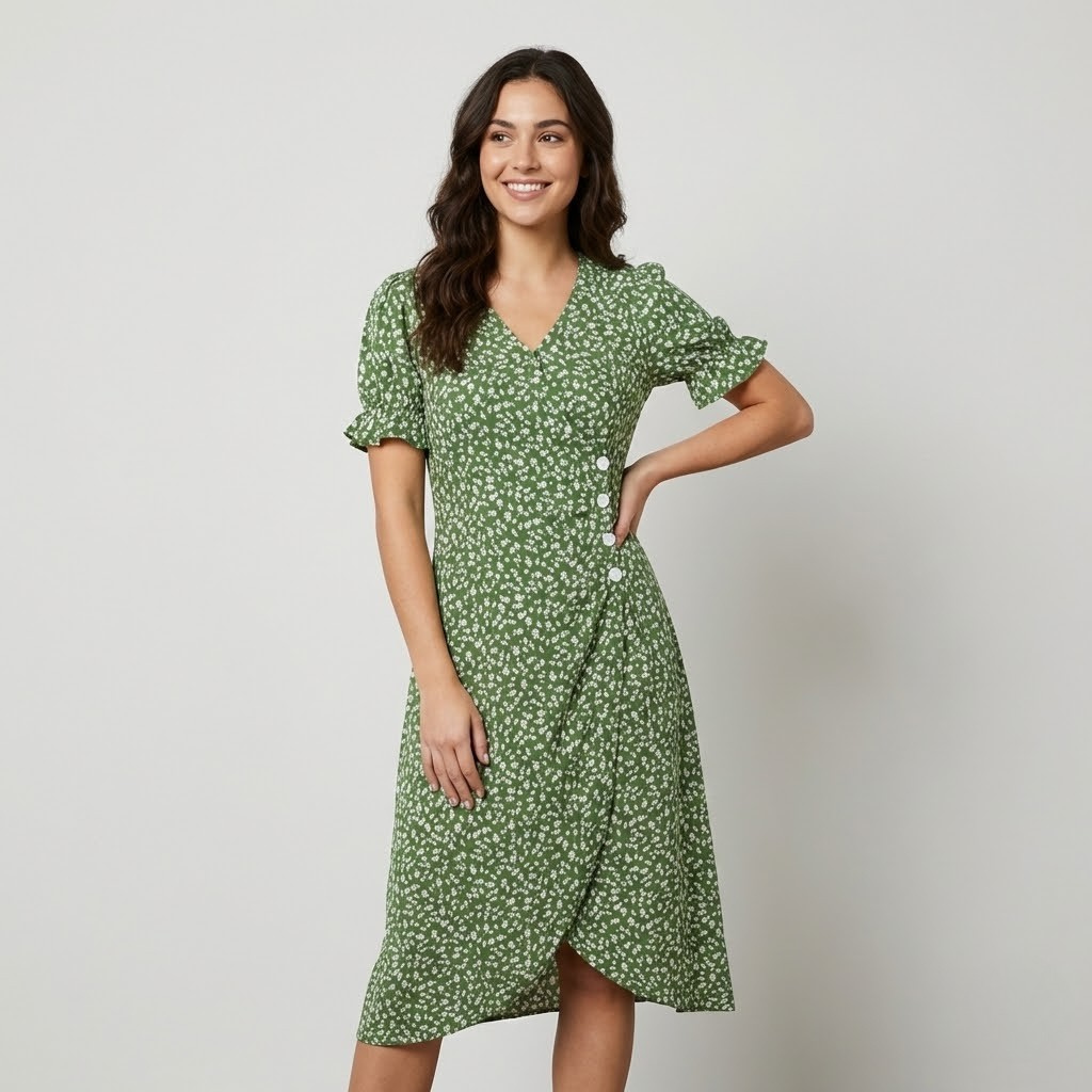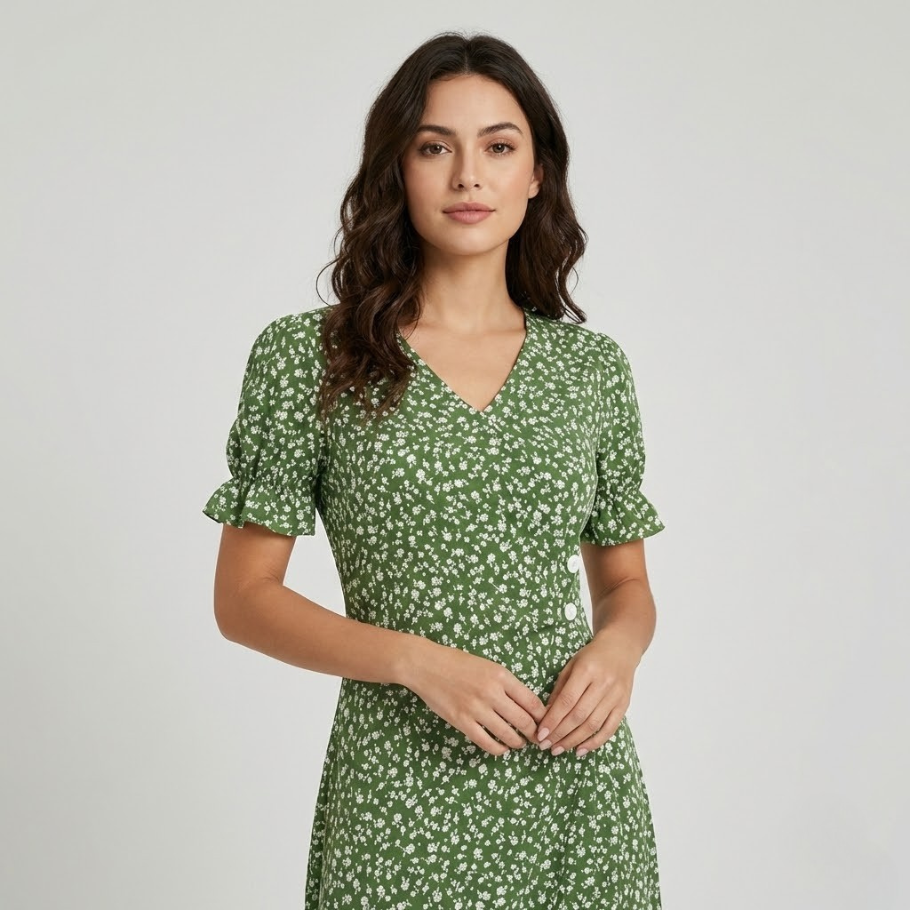Vestido midi floral em mistura de viscose | Corte feminino | Elegância natural