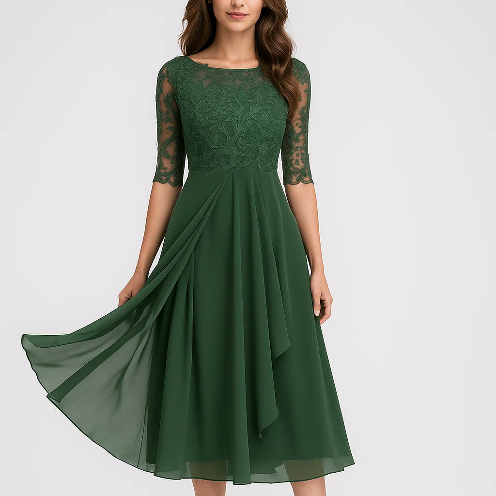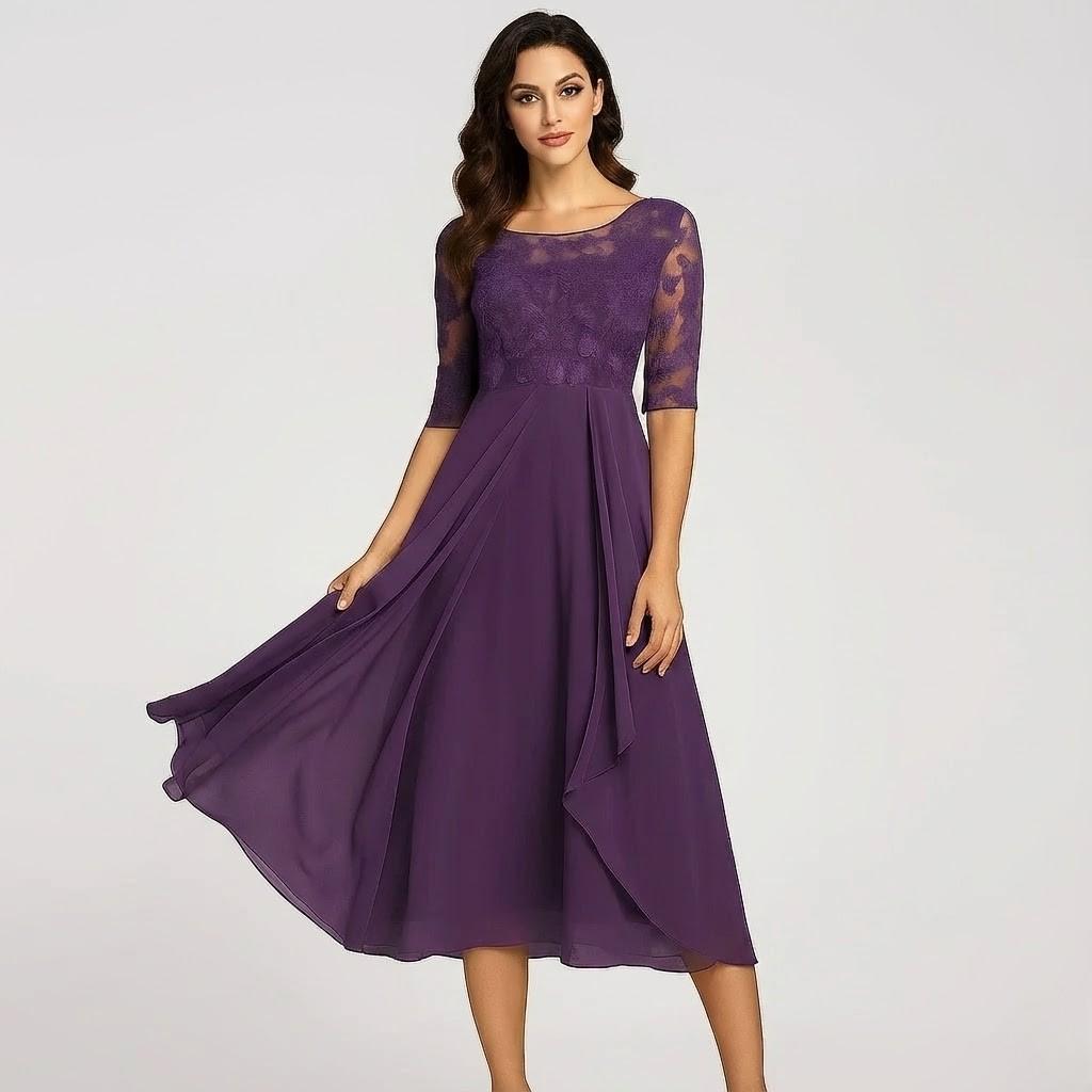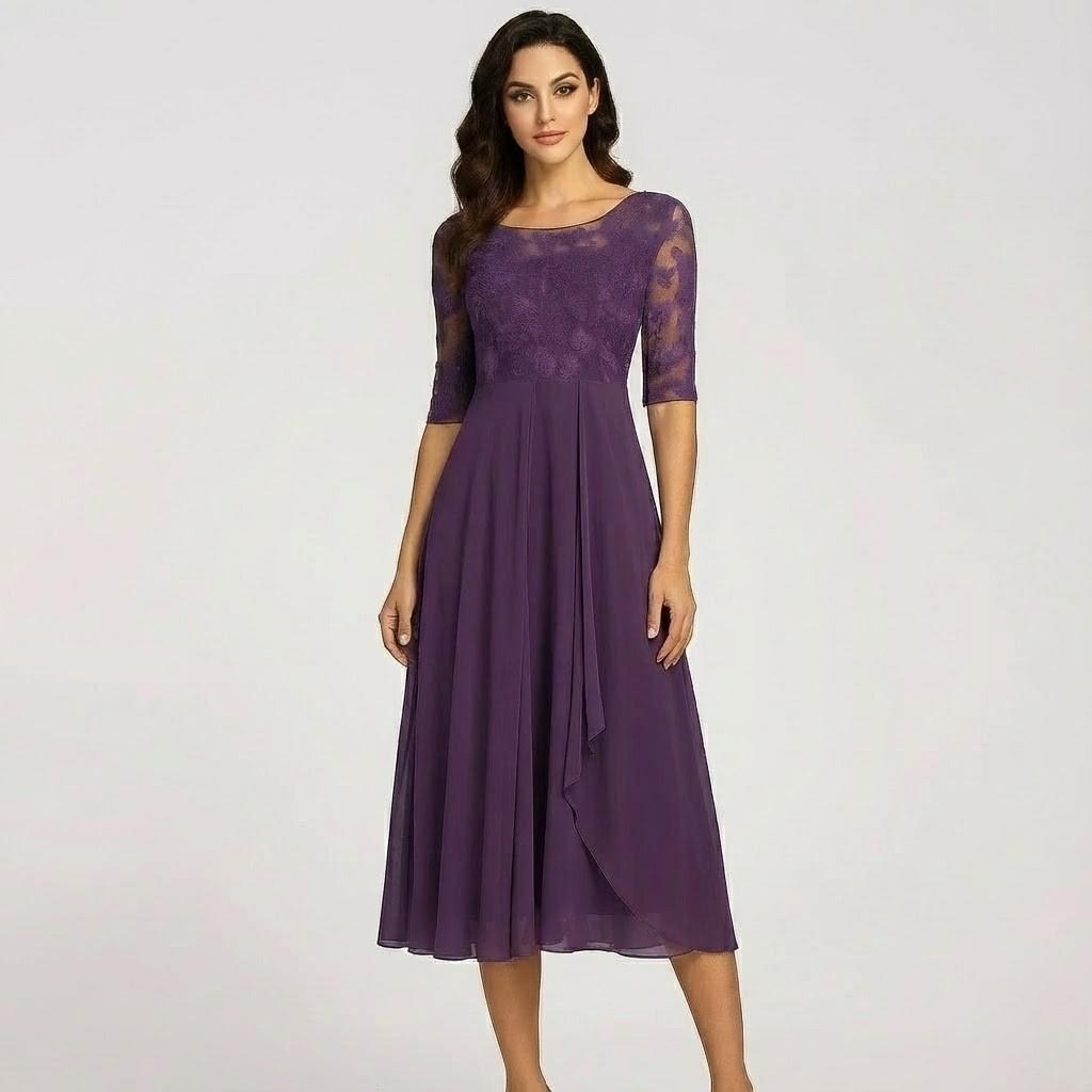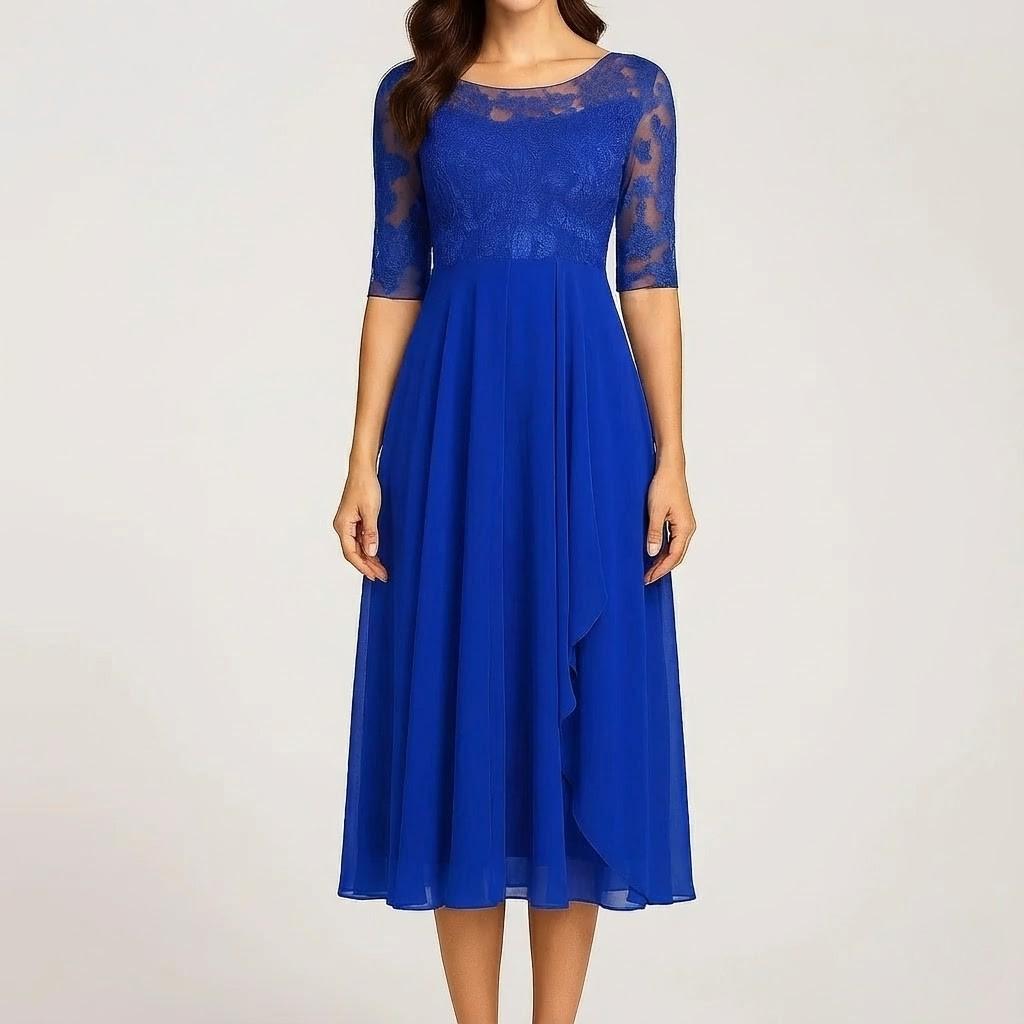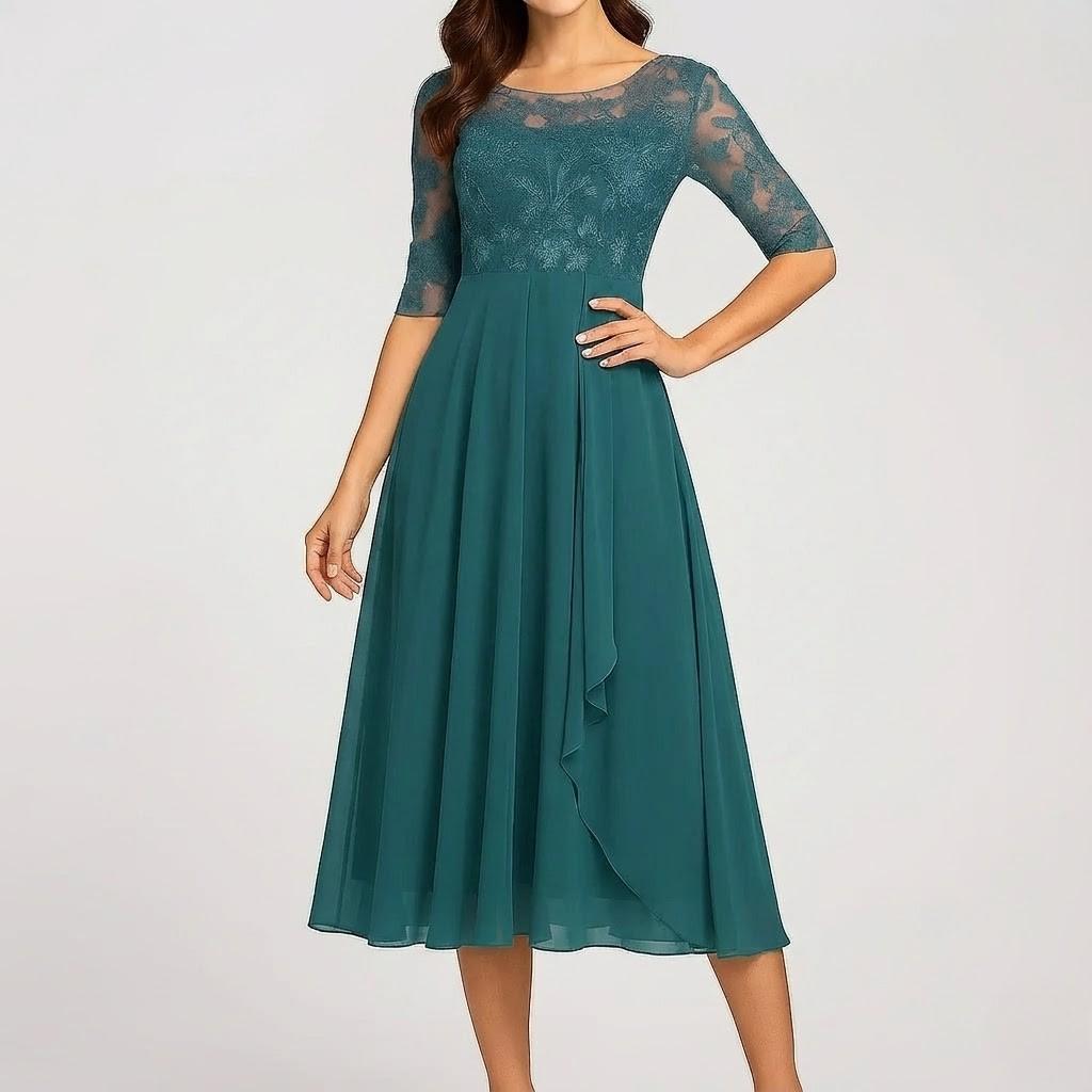 Vestido midi fluido com mangas três quartos para senhora